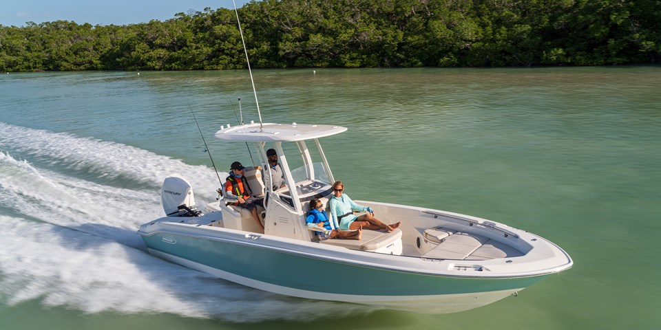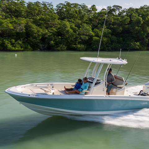 For boaters seeking a higher-quality bay boat experience, the all-new 250 Dauntless raises the bar. Smooth-riding performance and a spacious center console layout combine with amenities for fishing, watersports, comfortable offshore cruising and beyond. From the inviting bow lounge to the sleek redesigned hull, the 250 is more than just confident - it's dauntless.