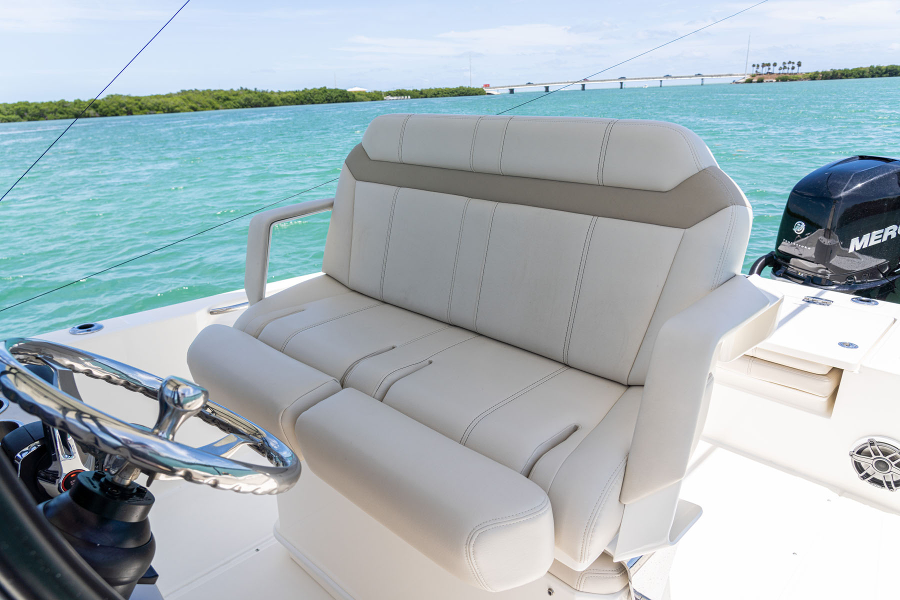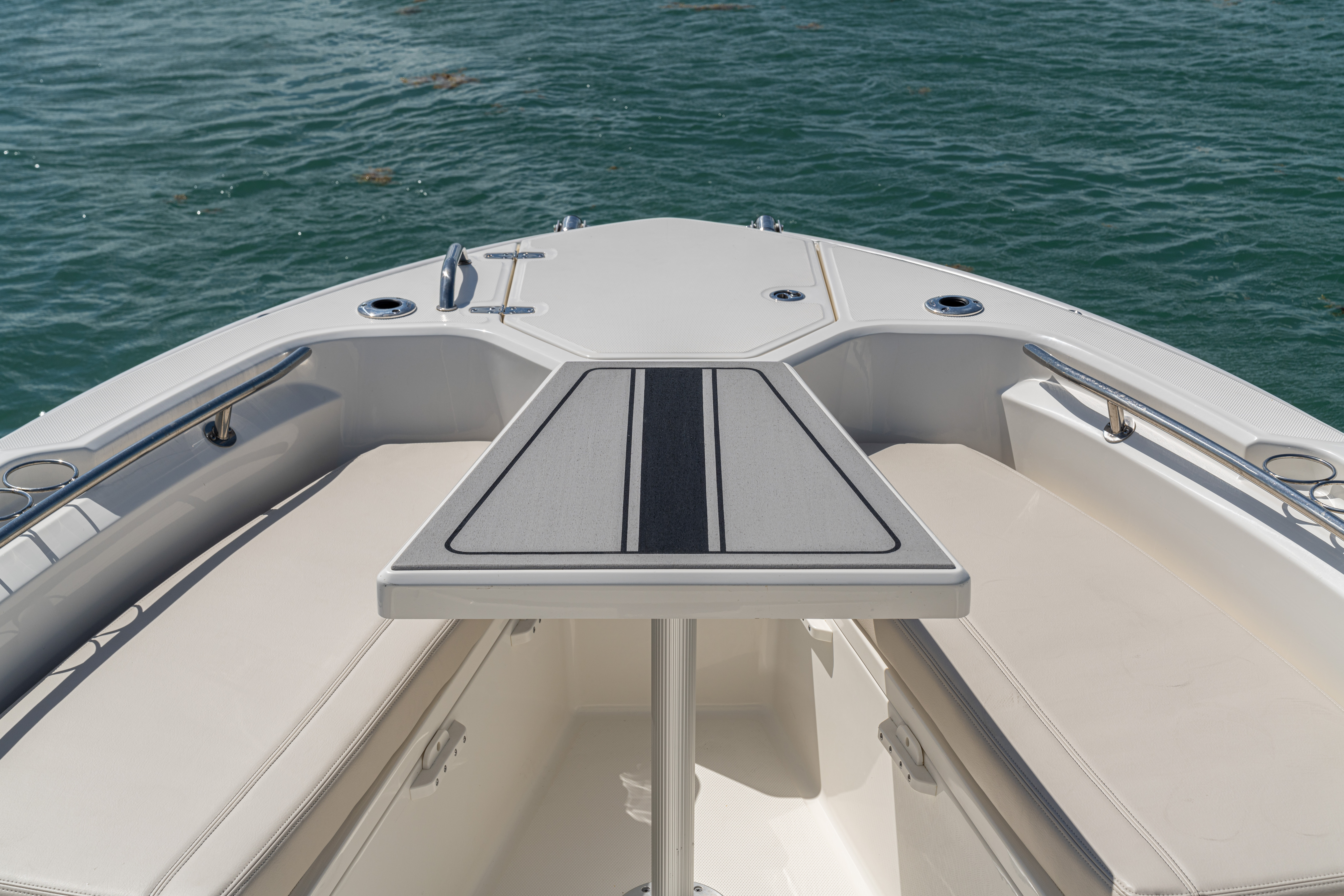 - Spacious forward seating combined with a center-console cockpit configuration keeps the whole crew happy.