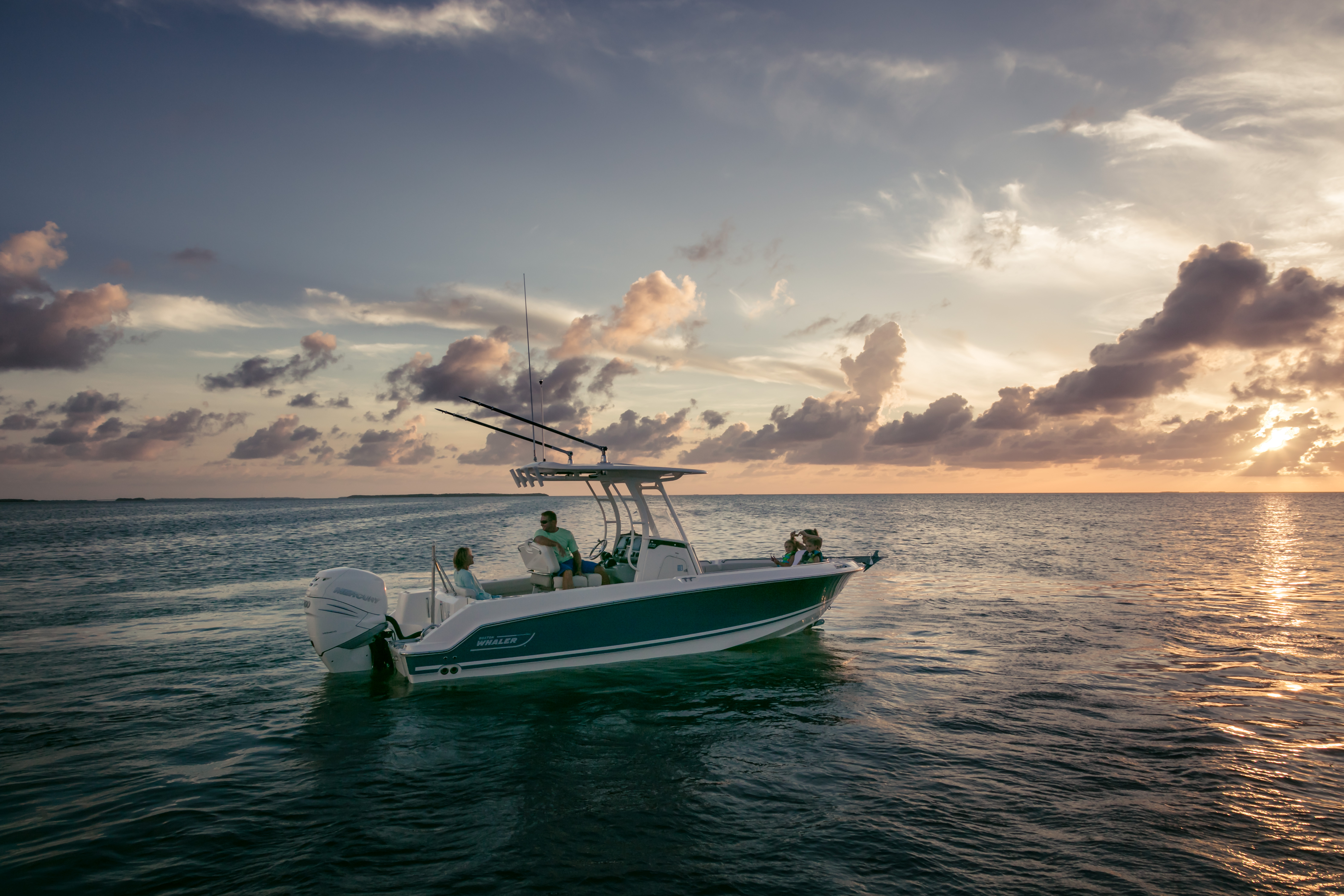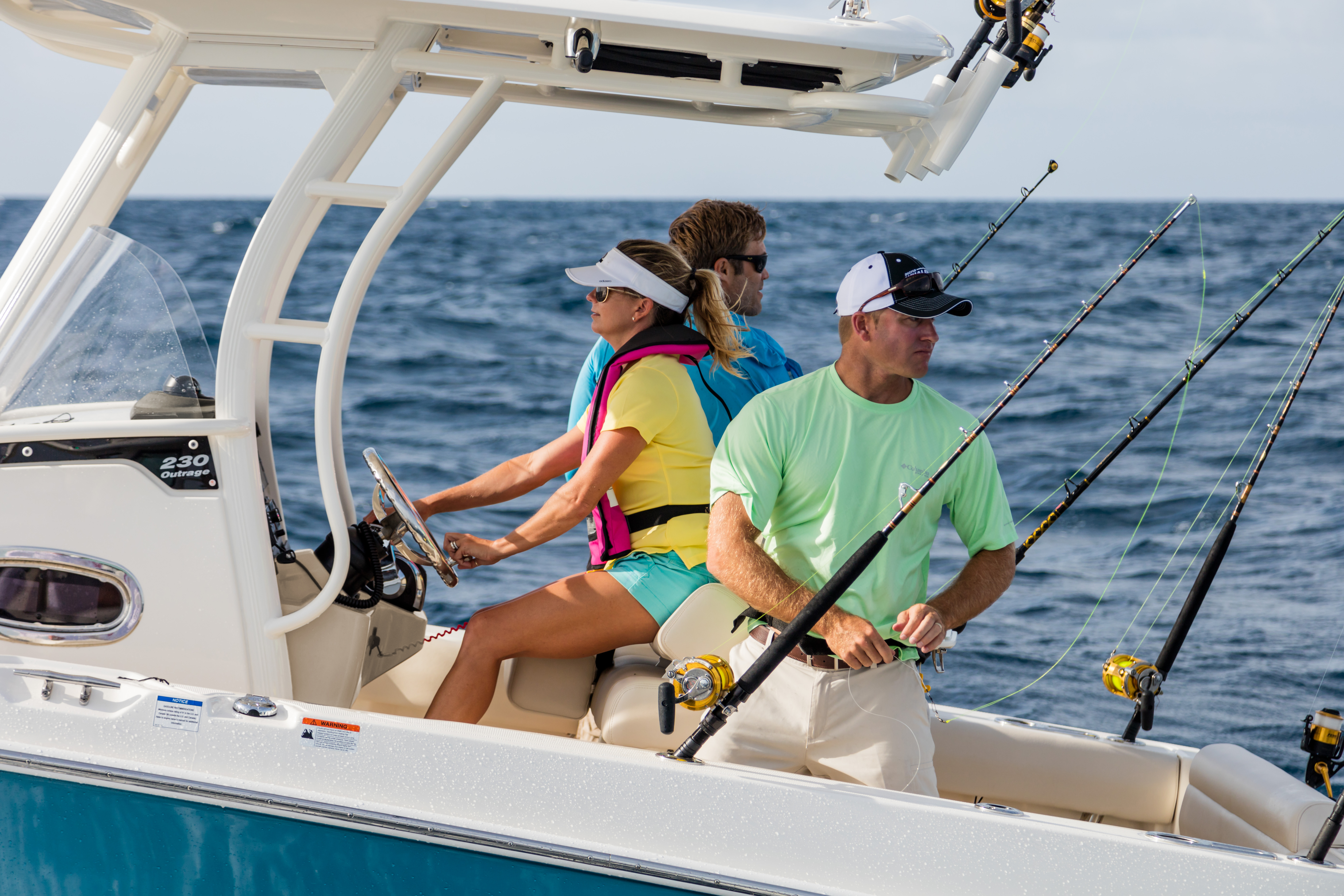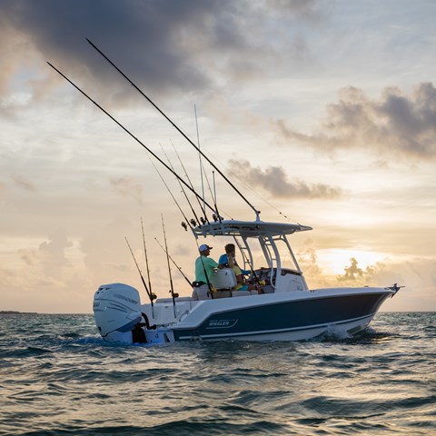 The bold 230 Outrage delivers huge fishing capability and huge comfort to match. The spacious bow area features ample seating and convenient in-floor and under-seat storage. Meanwhile, the roomy cockpit features the Converting Leaning Post, which conceals a handy work station and extra aft-facing seating. Available with an integrated fiberglass hardtop, premium navigation and fish-finding technology, JL Audio speakers and more, the 230 Outrage rises to any occasion.