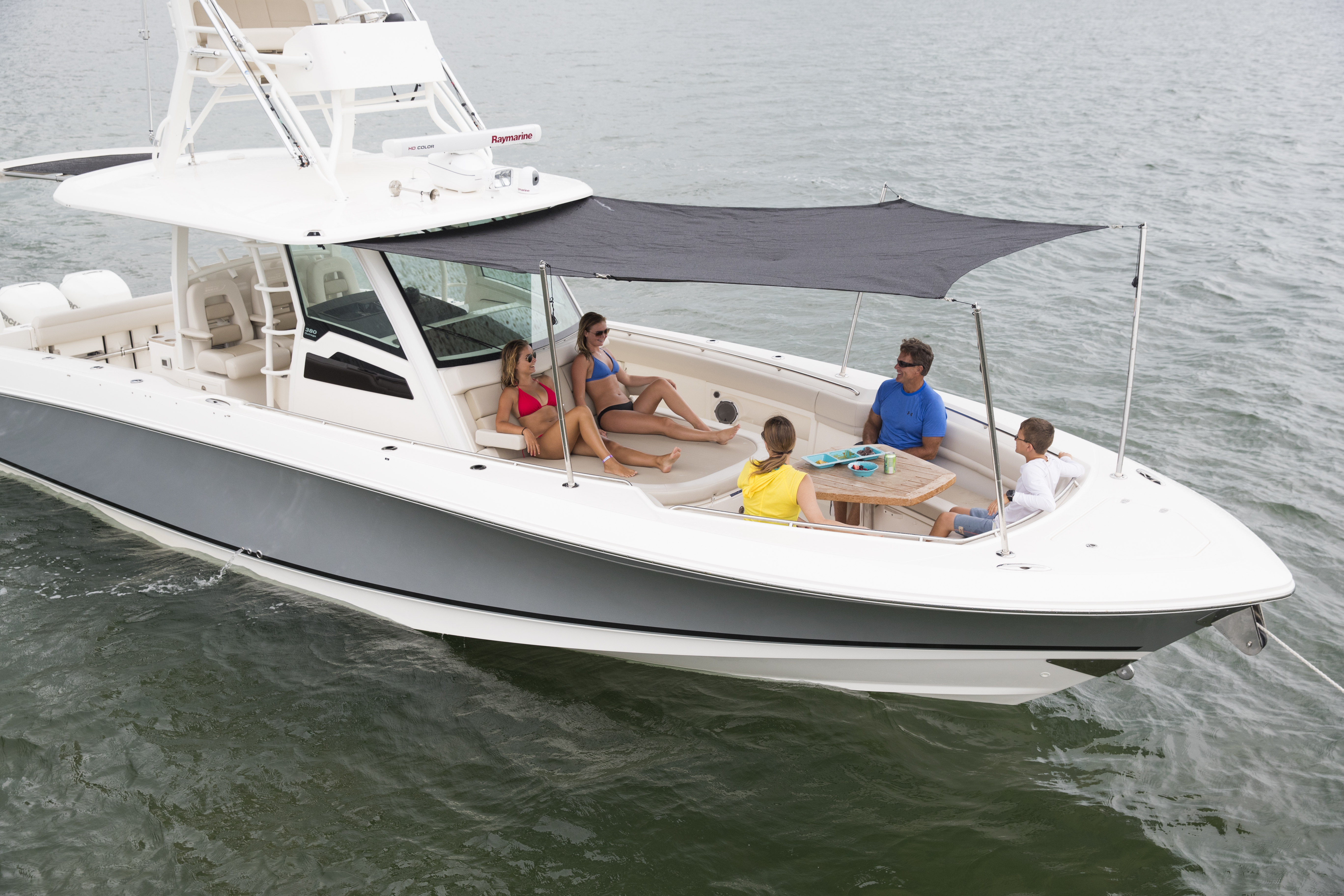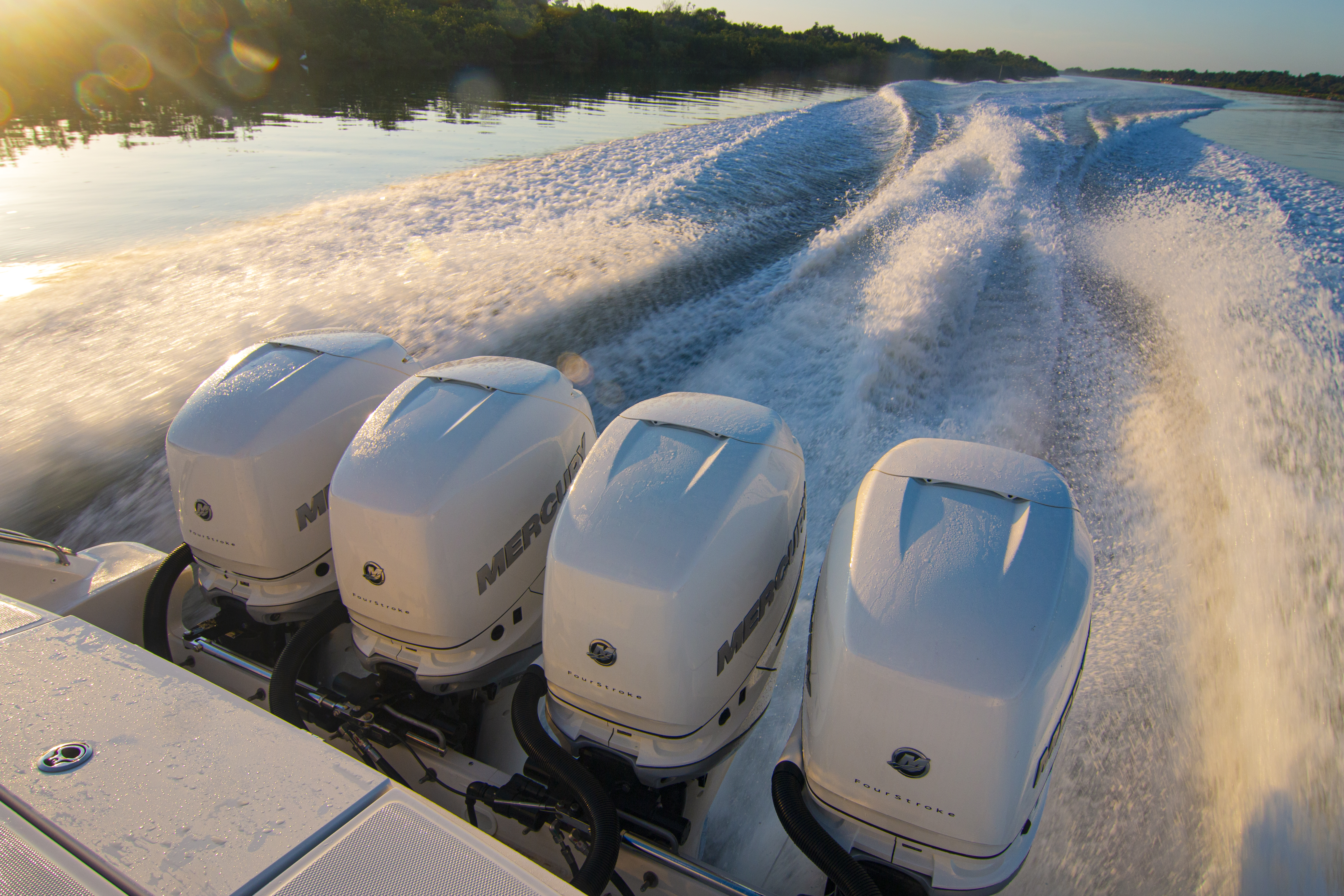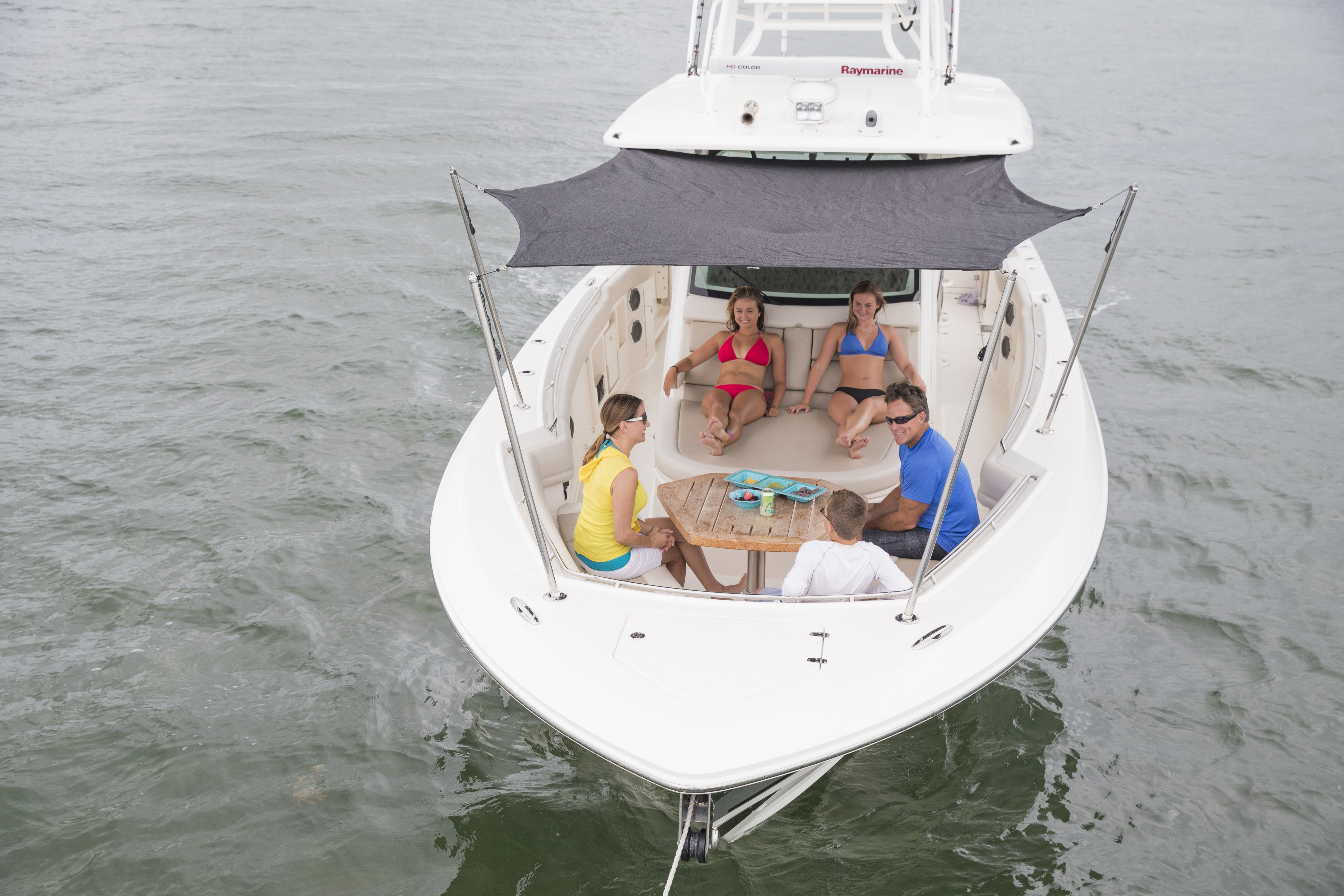 The 380 Outrage® delivers a full-spectrum, pinnacle experience, performing beautifully as an offshore fishing platform, an entertaining vessel, a yacht tender or all of the above. The roomy, notched bow features expansive seating and storage, while the cockpit includes a new aft-facing couch with optional removable table and an optional Summer Kitchen, perfect for entertaining friends and family. Boston Whaler's precision-engineered hull and Mercury® engines work together to provide remarkable efficiency, reliability and smooth, predictable handling. Experience true Confidence to the Core with the 380 Outrage.