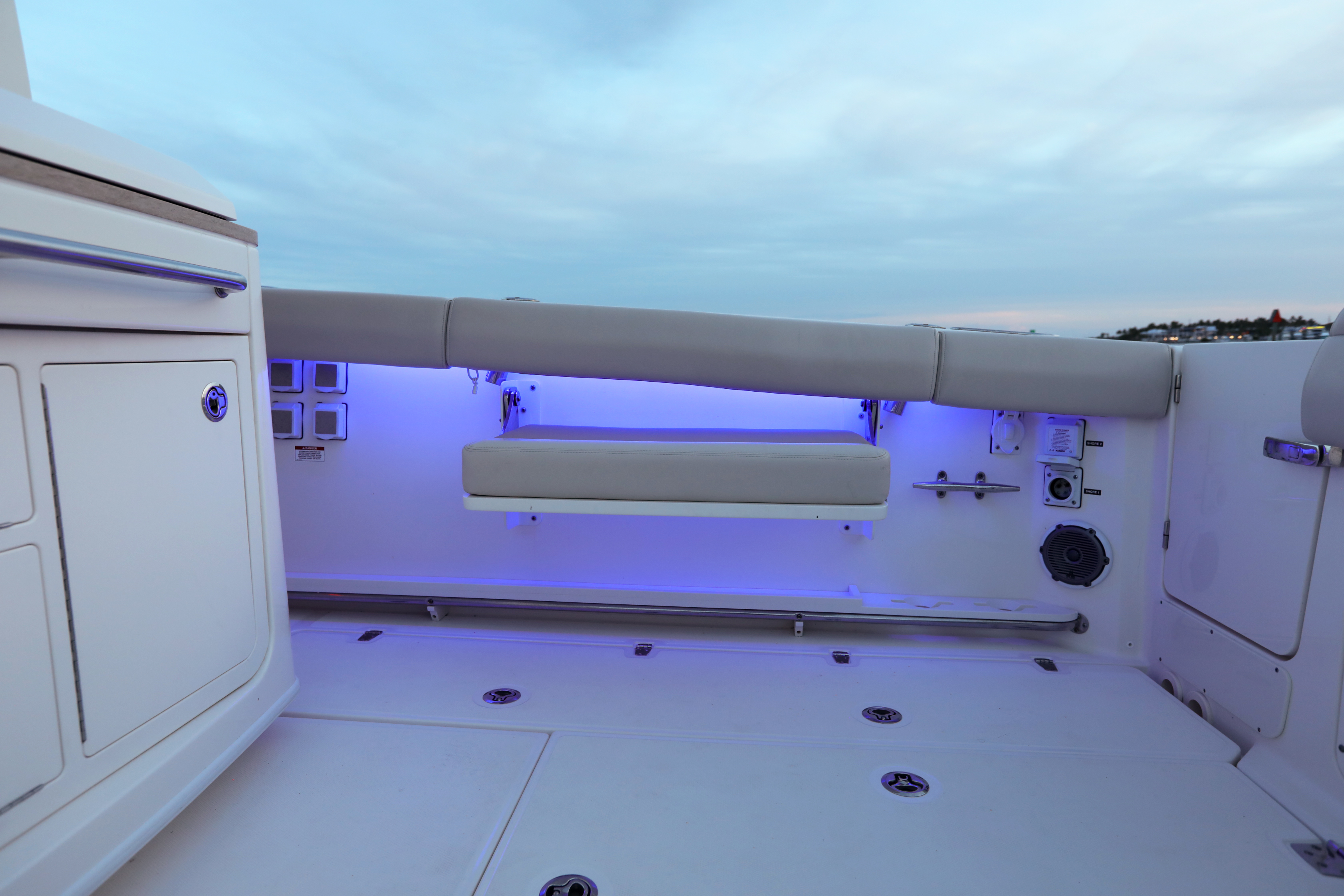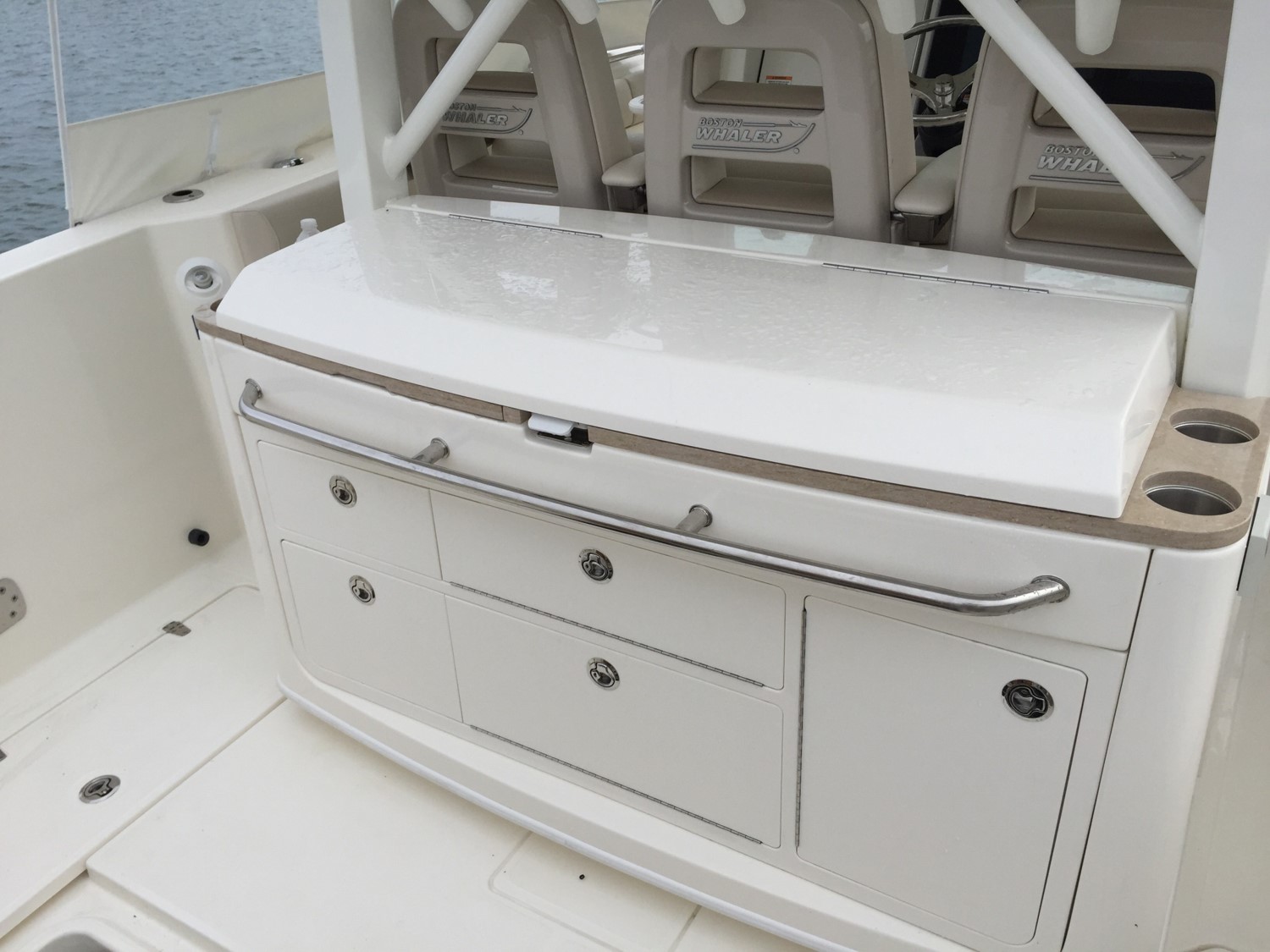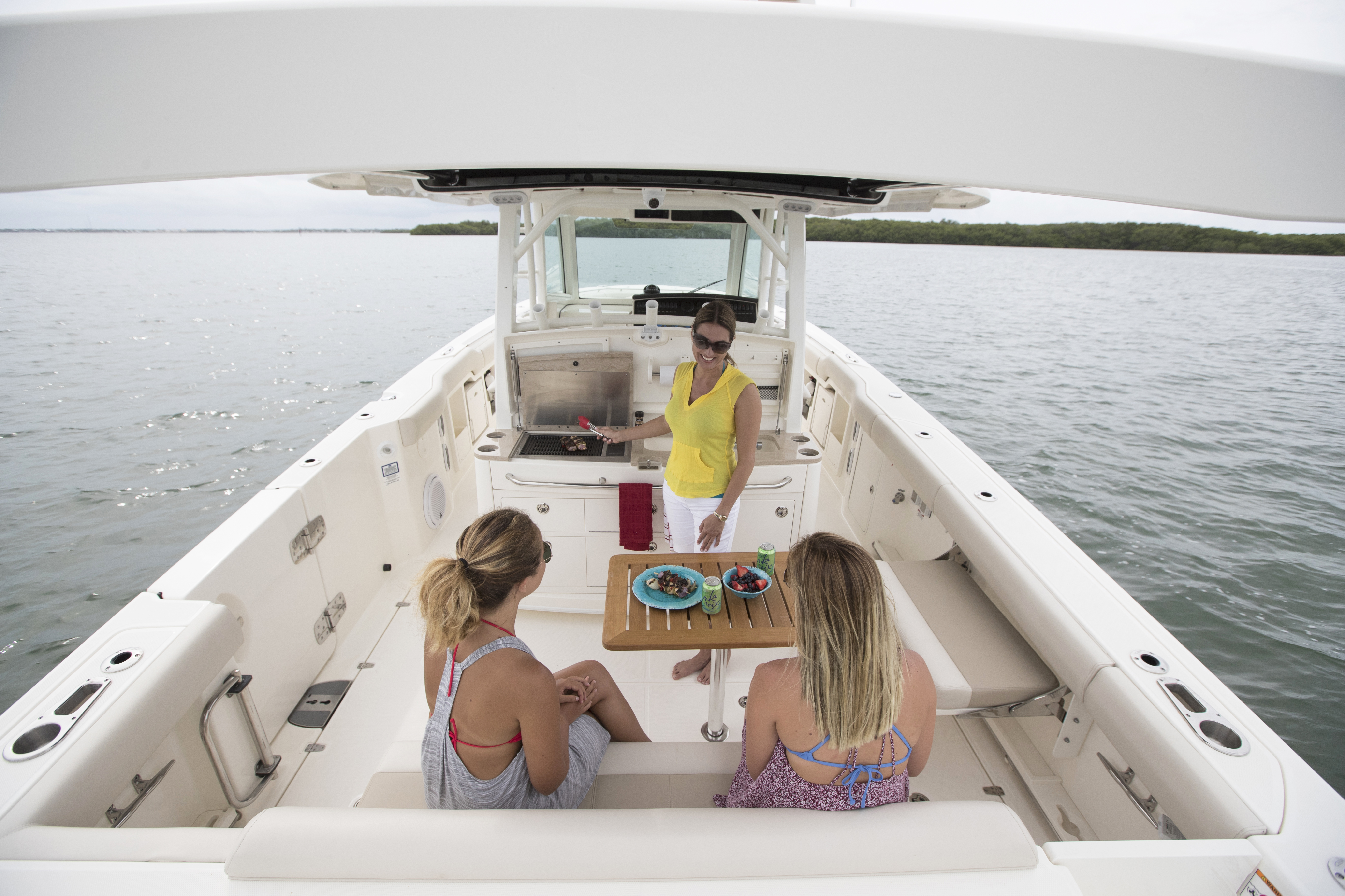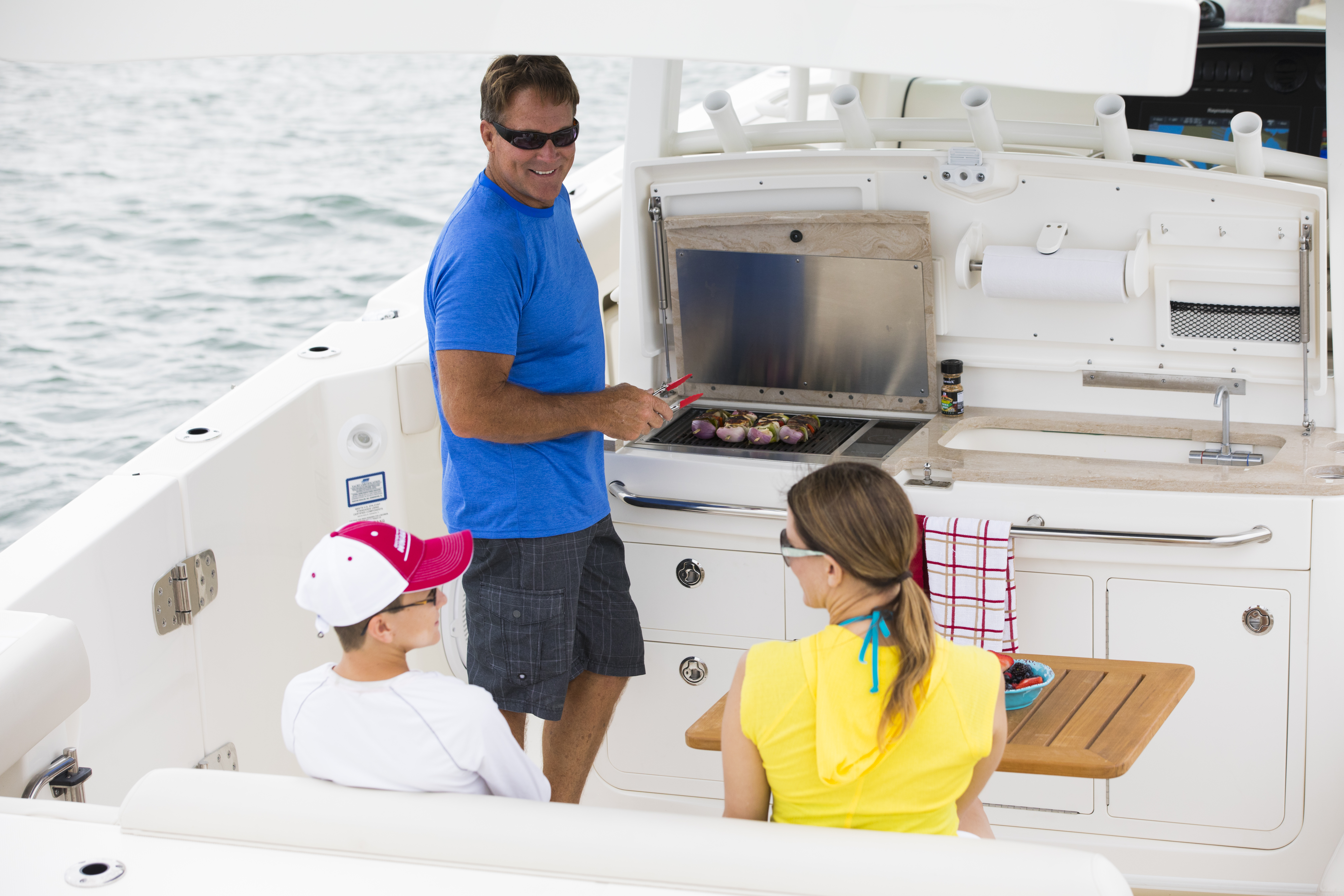Deluxe Leaning Post provides a second livewell for serious sportfishing, or choose the optional Summer Kitchen to gain a grill.