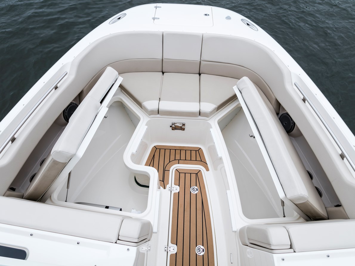 Spacious open bow features backrests, a large under-seat cooler, an optional bow table and more.