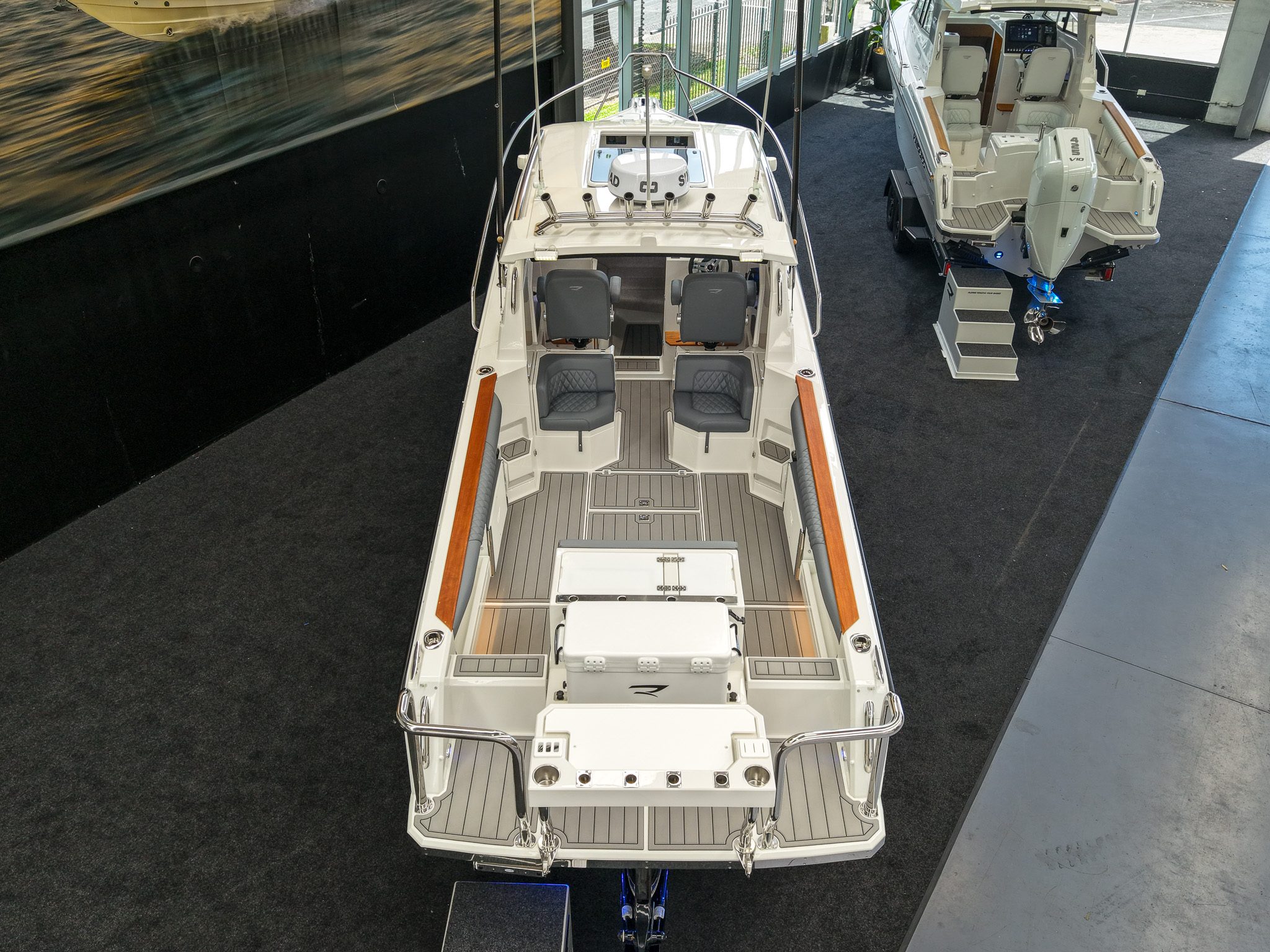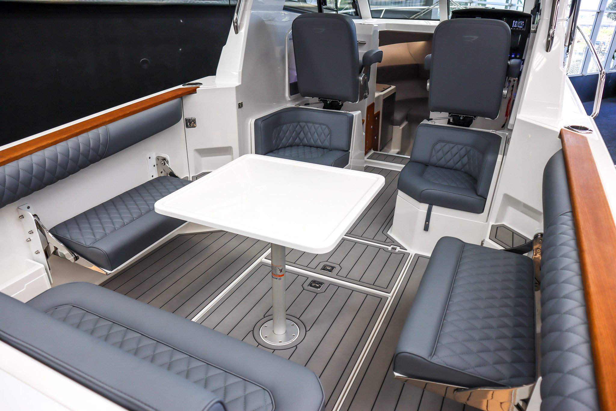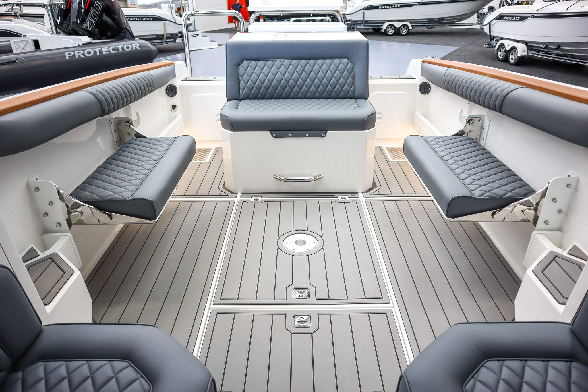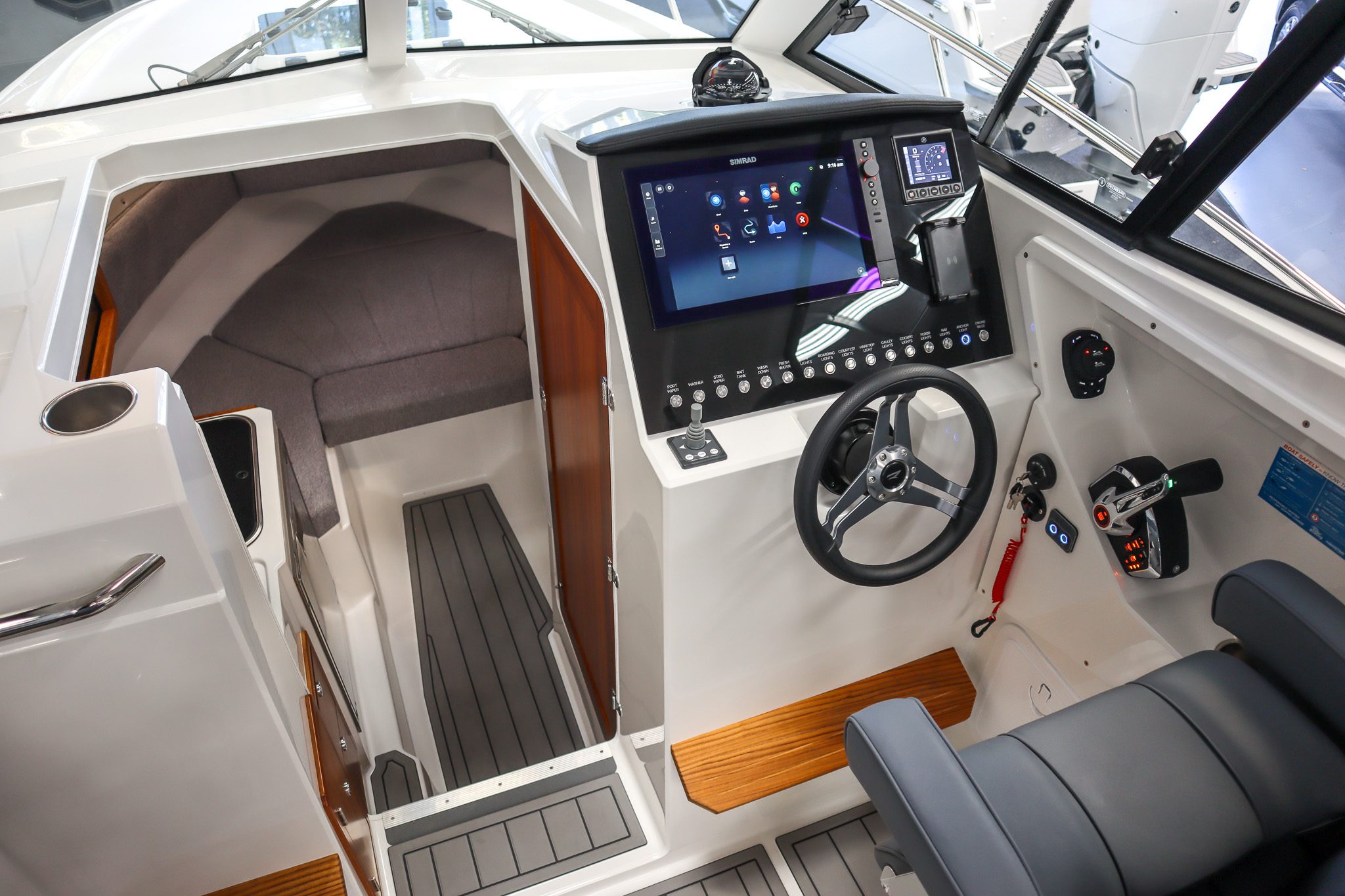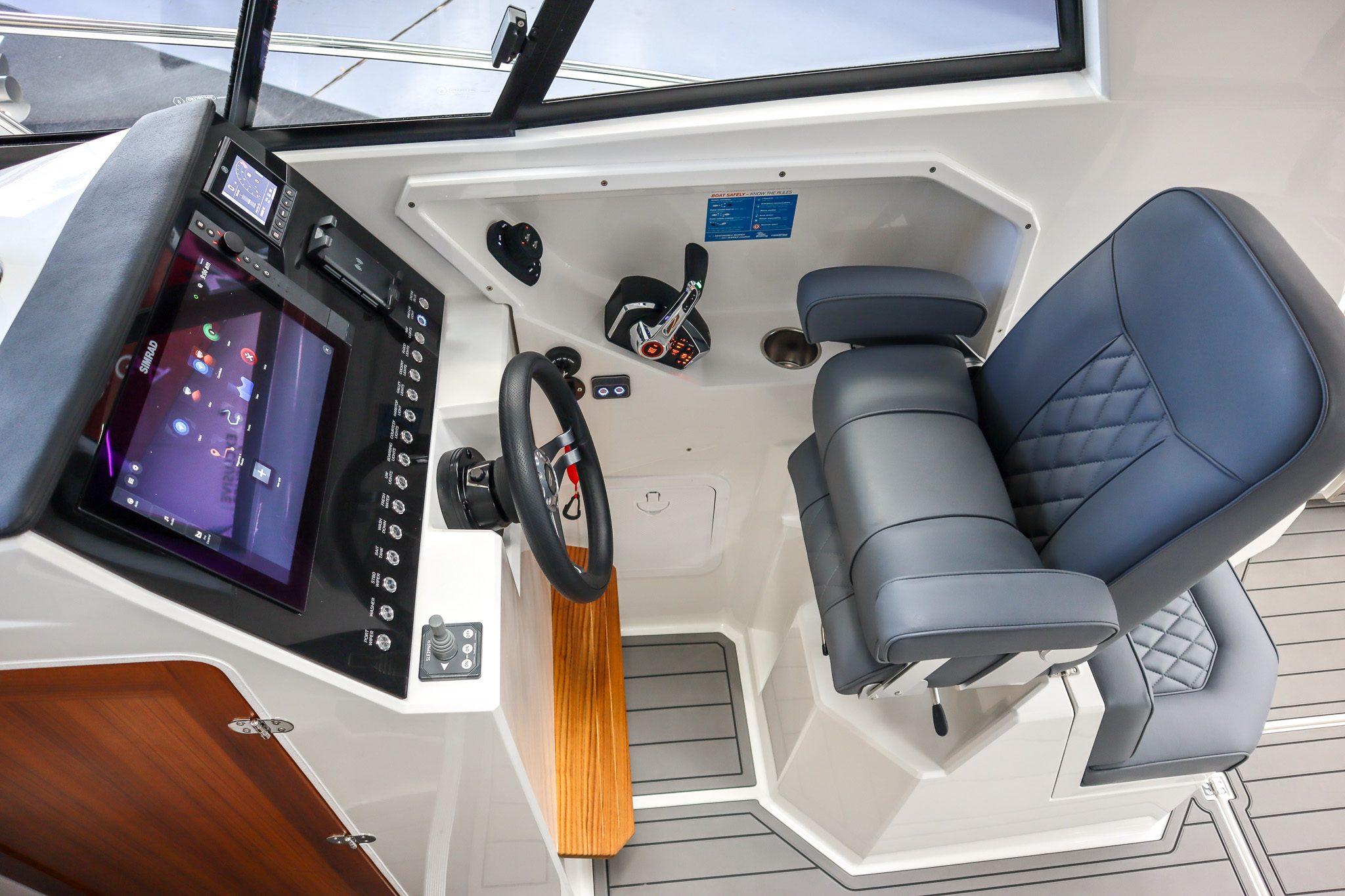Simrad 16 inch NSS4 MFD Simrad Autopilot Simrad Halo 20+ radar Simrad 1kw Transducer Lenco Pro Control automatic trim tabs Fusion RA670 stereo & speakers x4 Icom IC-M200 VHF radio and aerial 120amp/hr house battery & 10amp C-Tek battery charger Hella white/blue underwater lights Plumbed live bait tank Electric flush toilet Freshwater system including hot water Port & starboard fold out cockpit seats Removeable corner d-rails Removable cockpit table 70l icey tek chilly bin with removable s/s brackets Dinghy davits Black canvas backdrop cover Premium vinyl cabin lining Premium diamond stitching upholstery