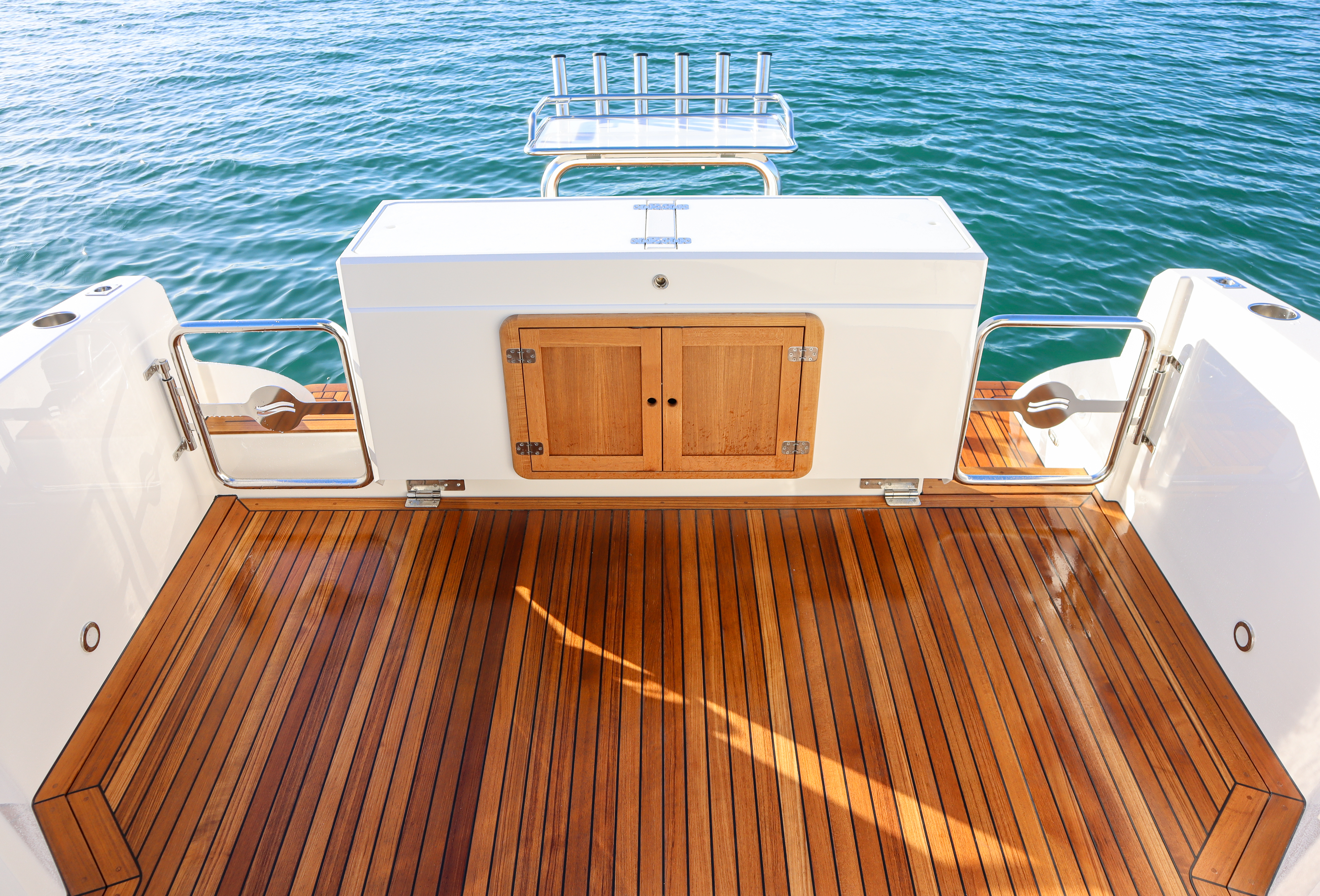 The owners of Eden have opted for the built in 'island station' instead of the normal seat and BBQ seat up in the cockpit - a brilliant option for those who are more fishing orientated.