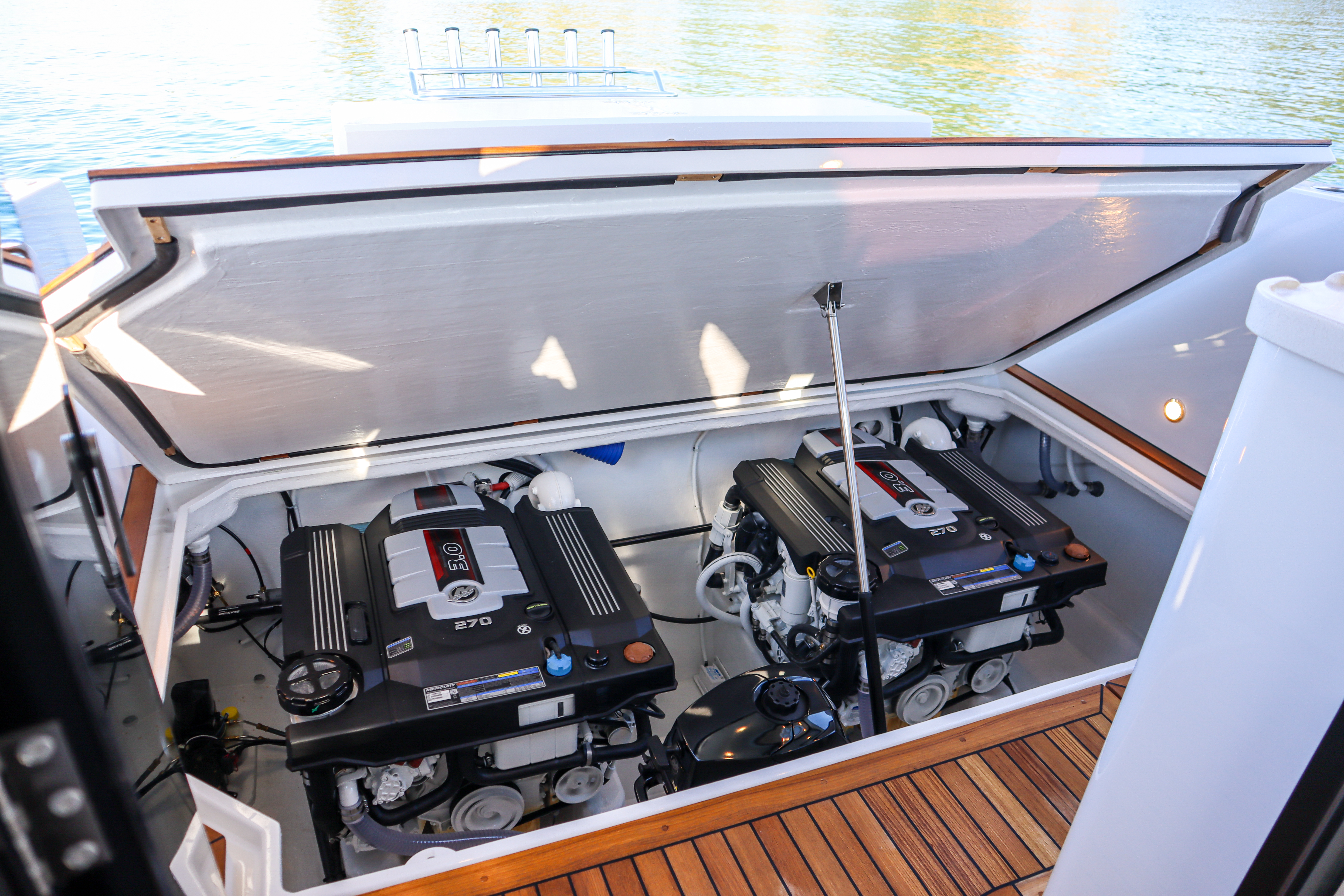 - Twin Yanmar 8LV 370hp V8 diesel engines & Yanmar ZT 370 stern drives