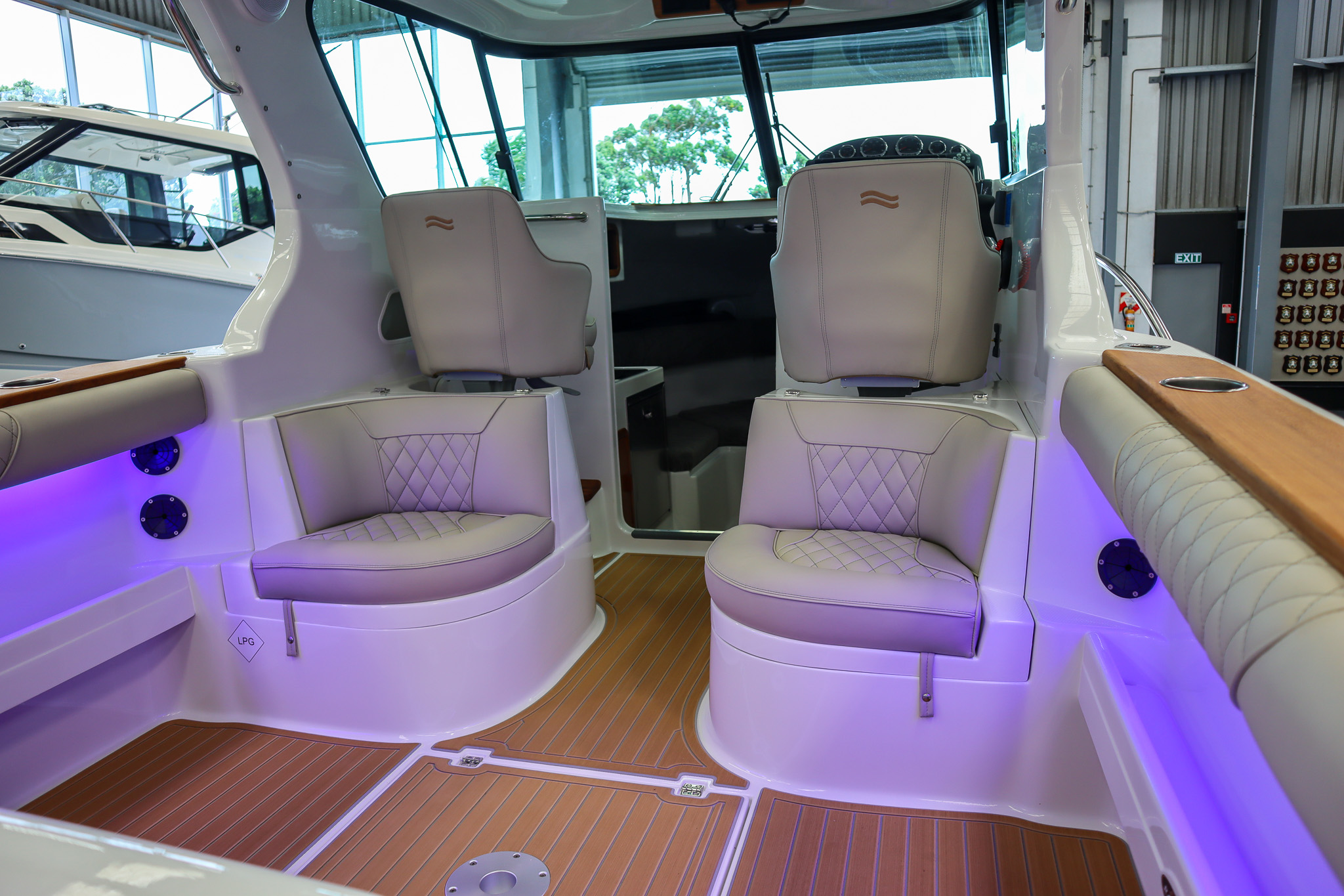 Optioned with our premium 'diamond stitch' upholstery package, extended cruiser top and removeable transom seats to name a few, its fair to say Kotare is a very well equipped, premium cruiser that can handle it all!