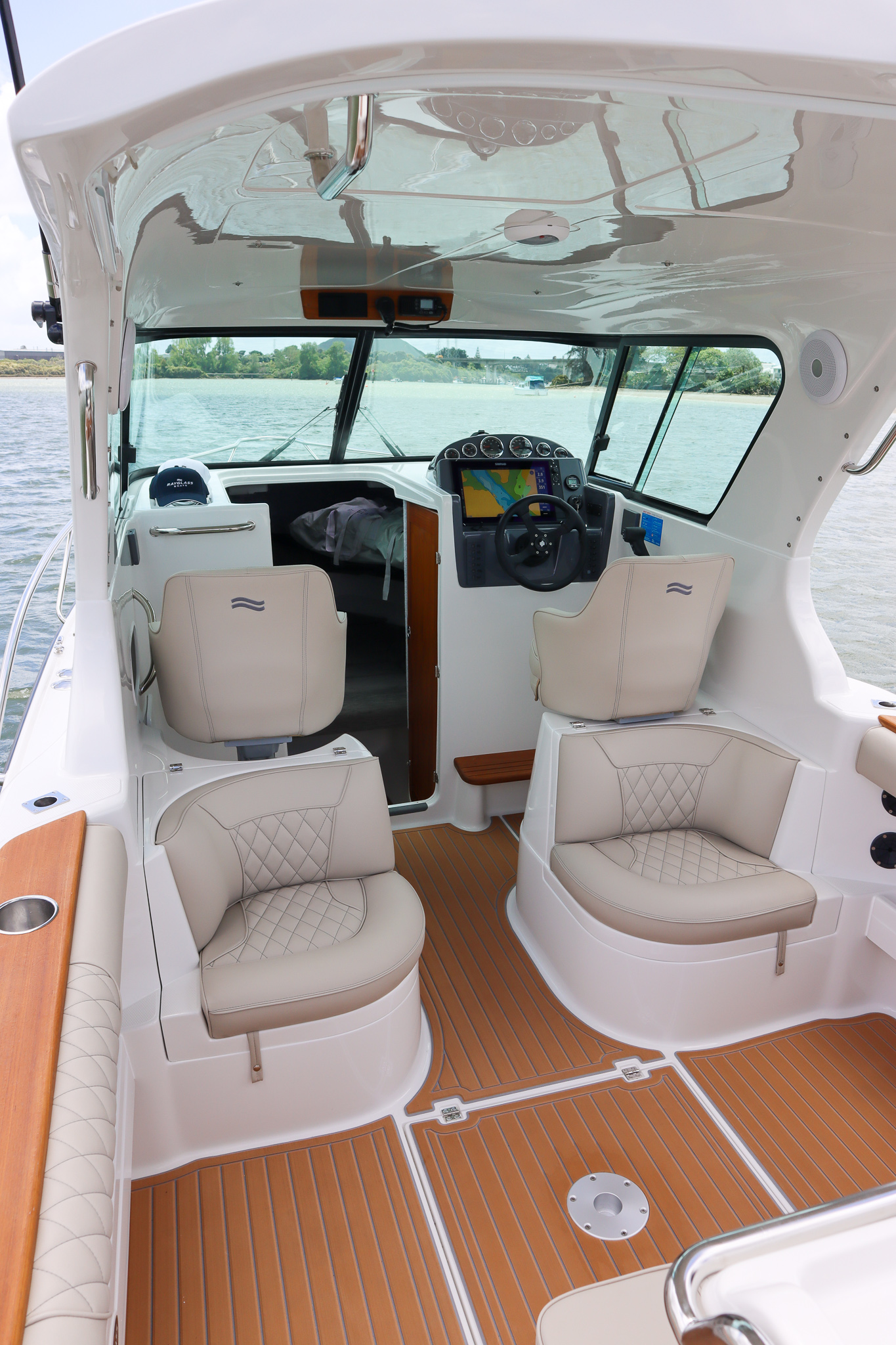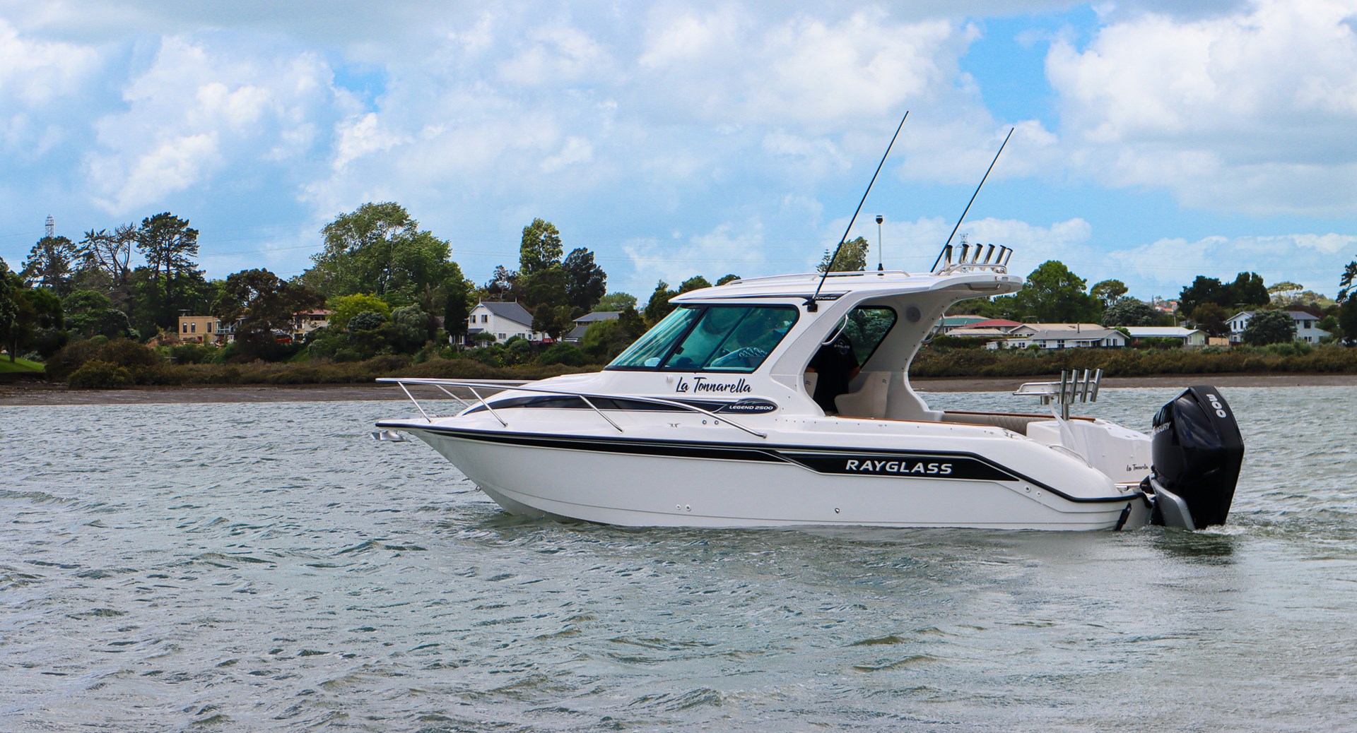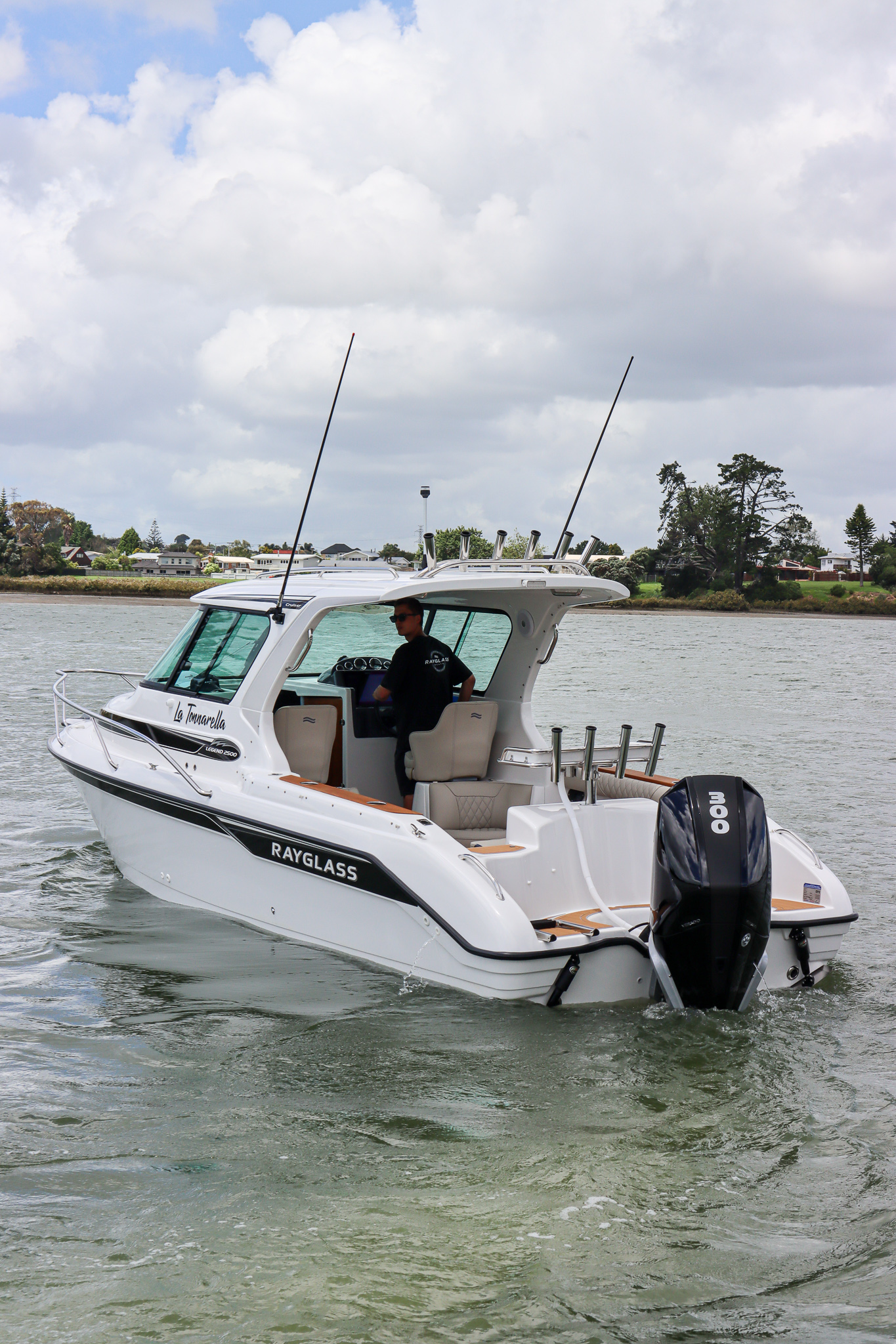 Recently delivered to a family of 5 for a summer filled with good times on the Hauraki Gulf. Fishing, overnighting or just a nice day on the water, this 2500 ticks all the boxes. Fitted with the extended Rayglass 'cruiser' hardtop - perfect for a bit of protection from the sun on the hotter days, rain on the not so warm days and full use of the cockpit with all the covers up while overnighting.