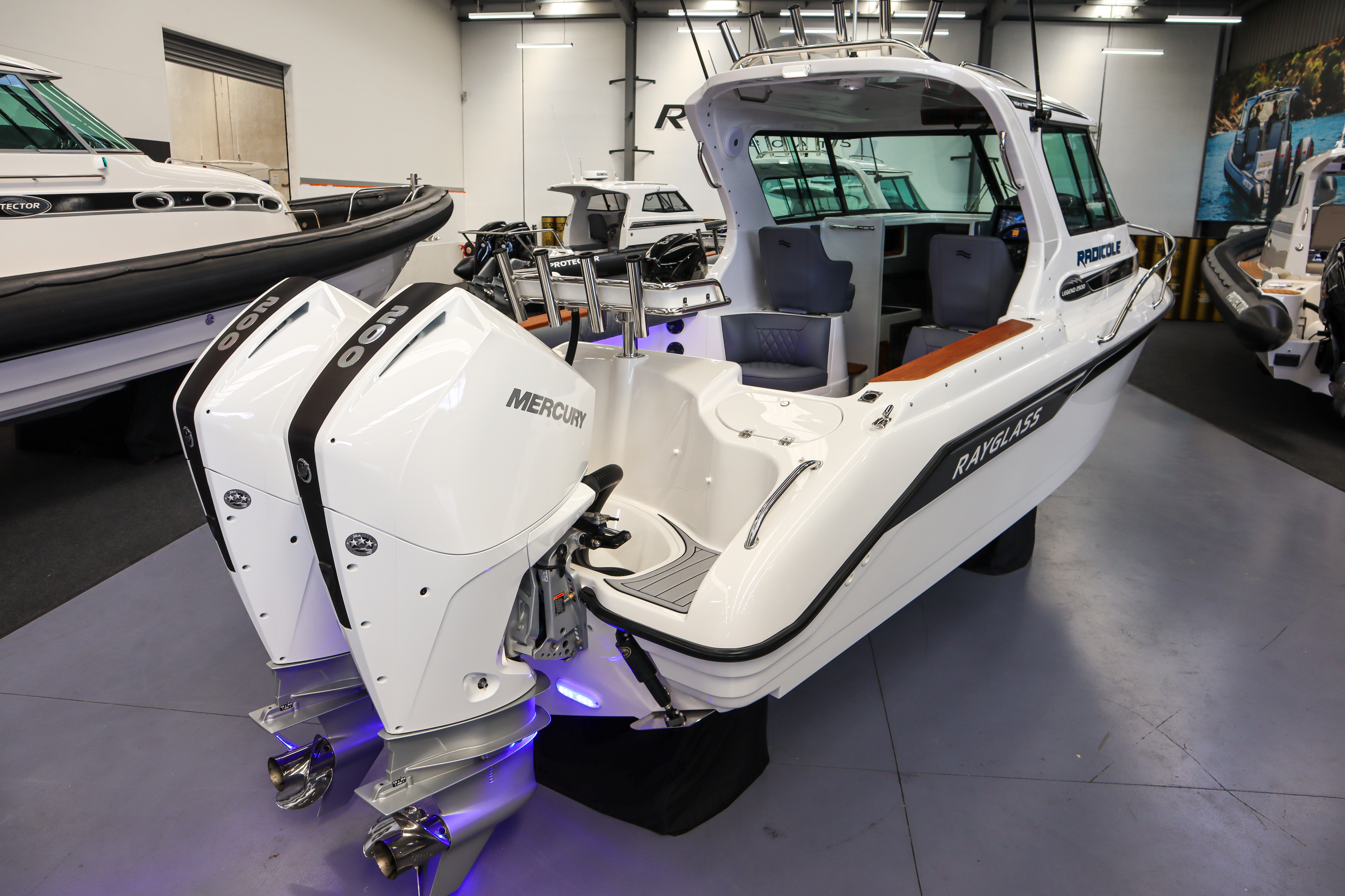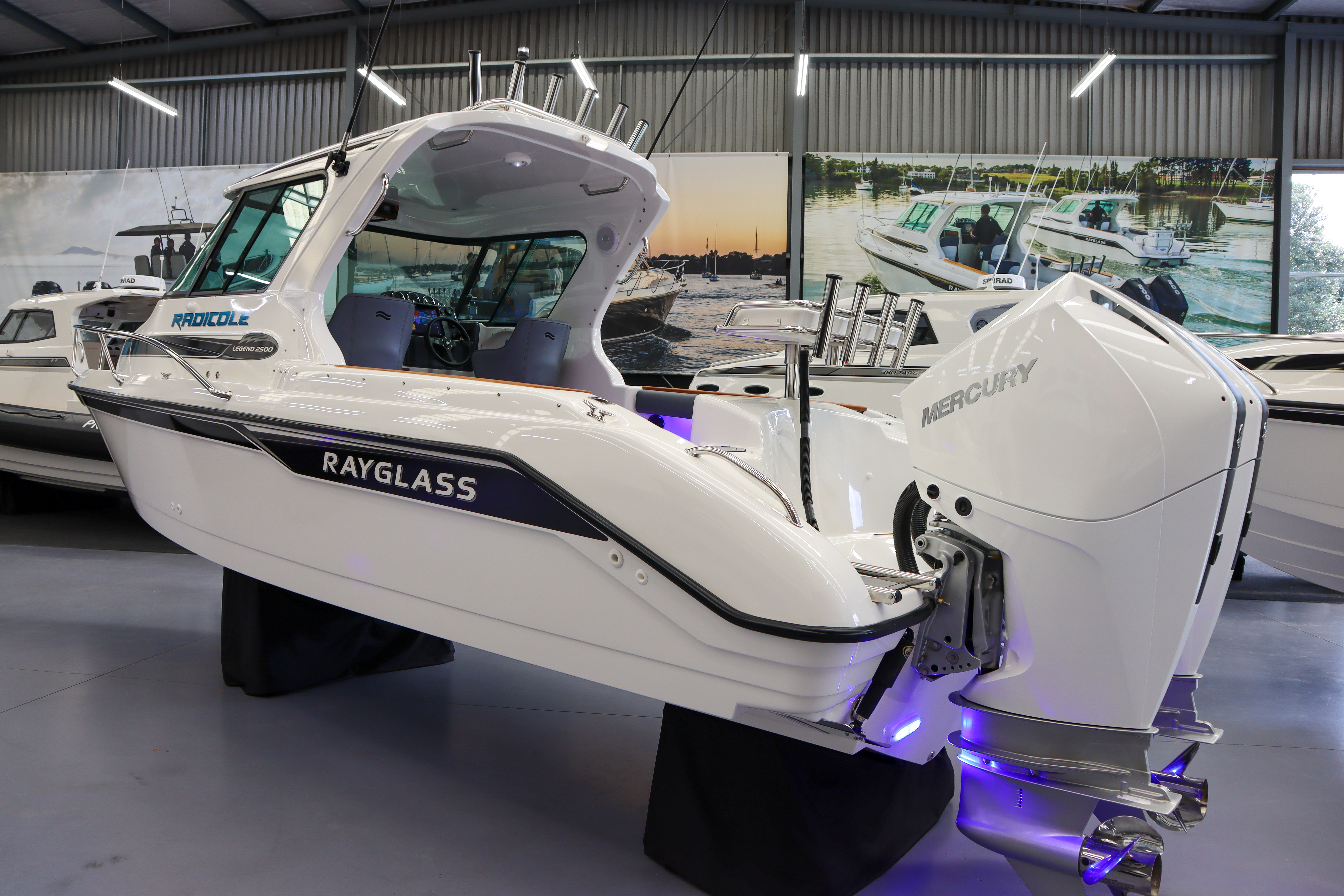 This Legend 2500 is going to be a hard one to miss! Looking absolutely stunning with twin White 200hp V6 Mercury outboards and premium upholstery package. The owners have set this up to get where they are wanting to go fast and in complete comfort and style!