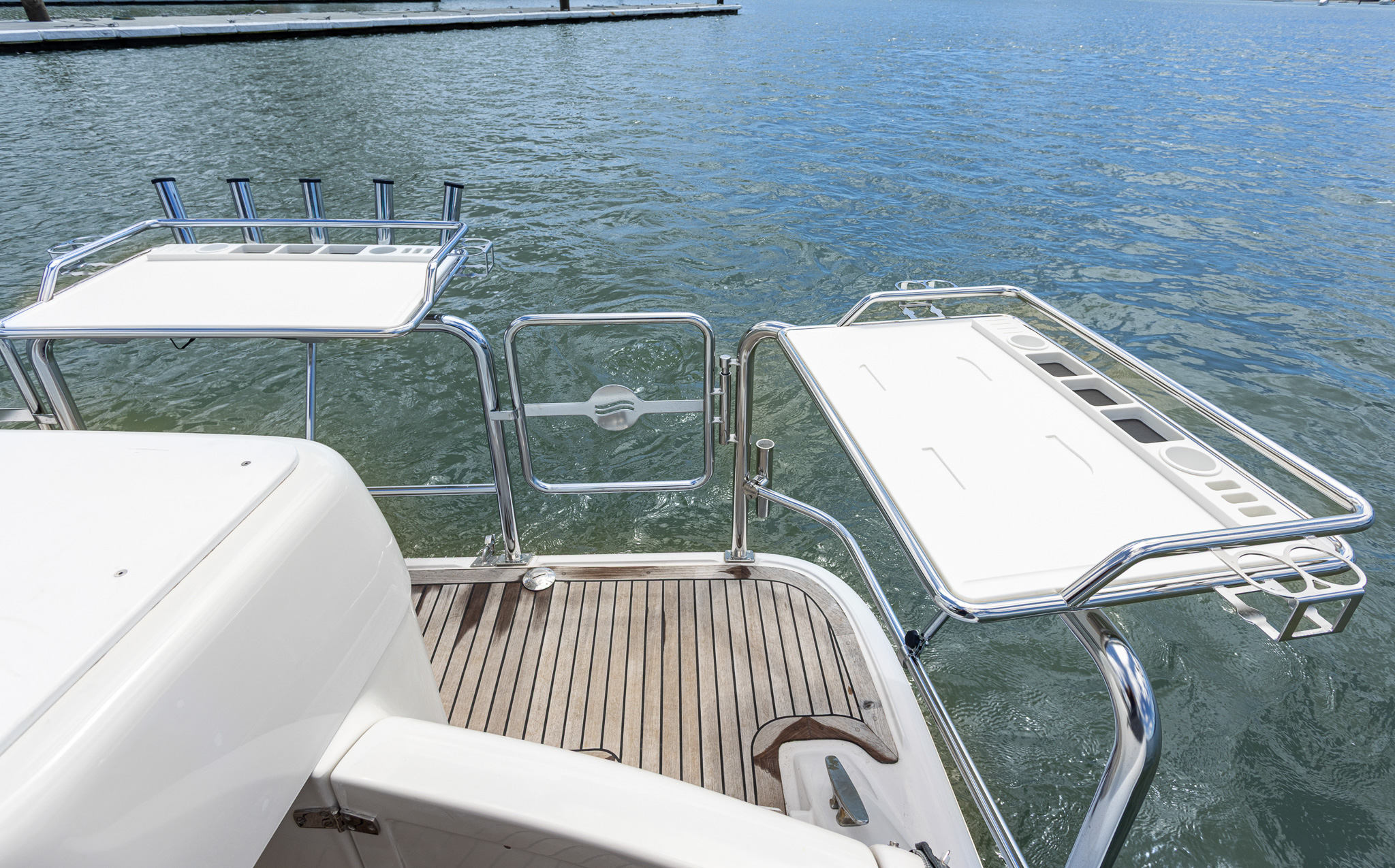 There’s also full autopilot, which is great for longer trips, a thumping big fusion system, full stainless leaning rail all the way around, and new 20ft custom carbon game poles - plus custom rod rigs enough to fit 7-8 Shimano reels. But the best part, according to Tim is the hull wrap: