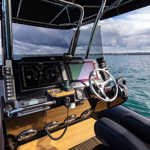 The Rayglass Protector Chase 330 offers huge deck space and a generous centre cabin console with room for two large GPS screens. It’s the perfect high performance boat for those who need that extra deck-space and capability.
