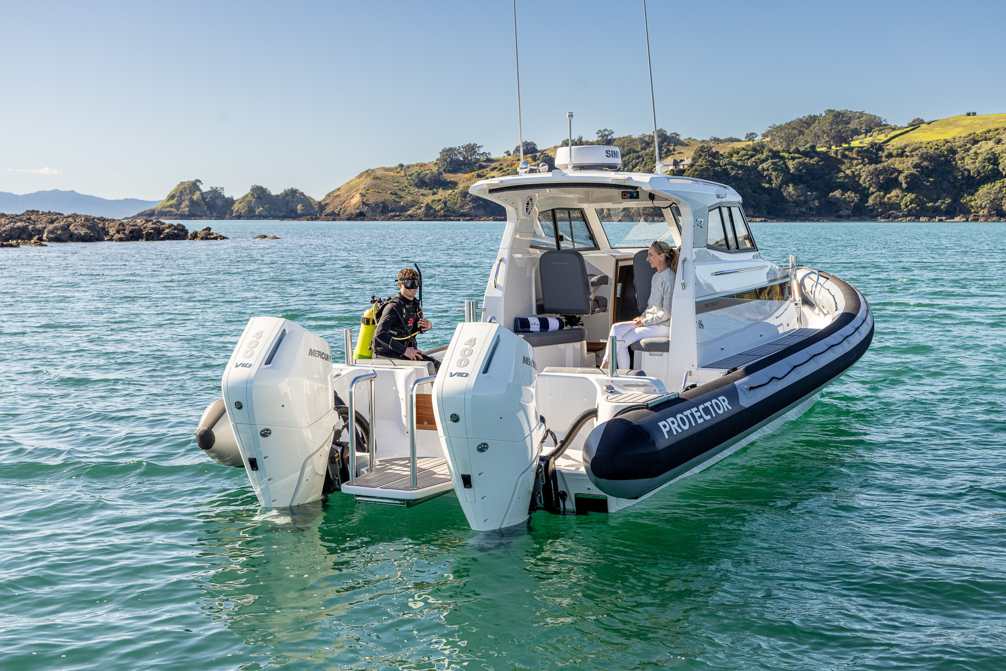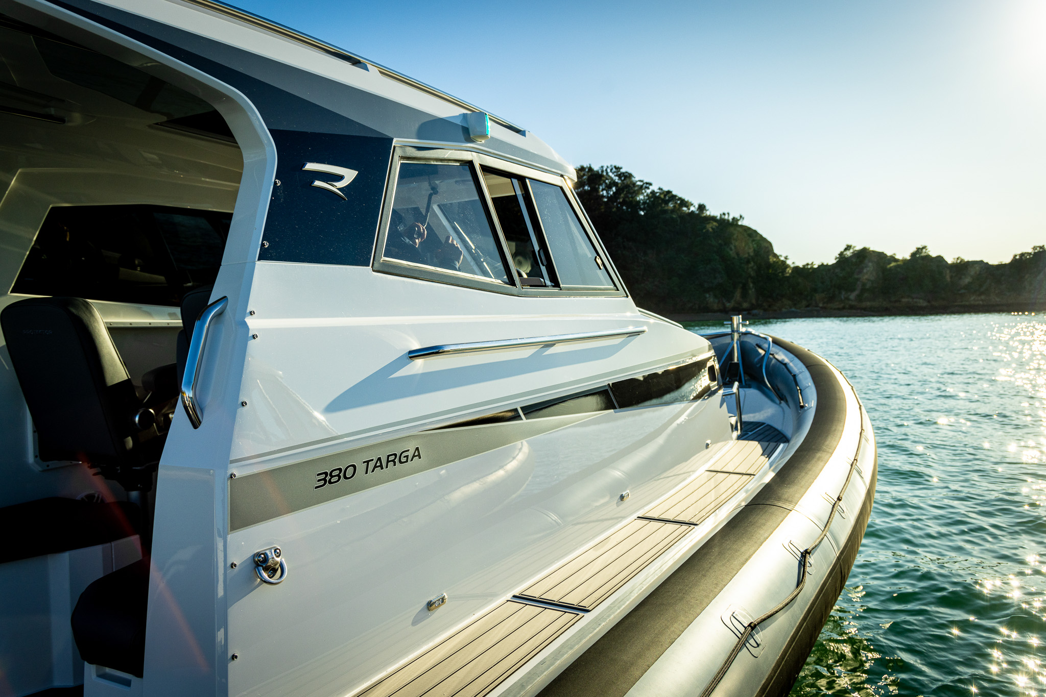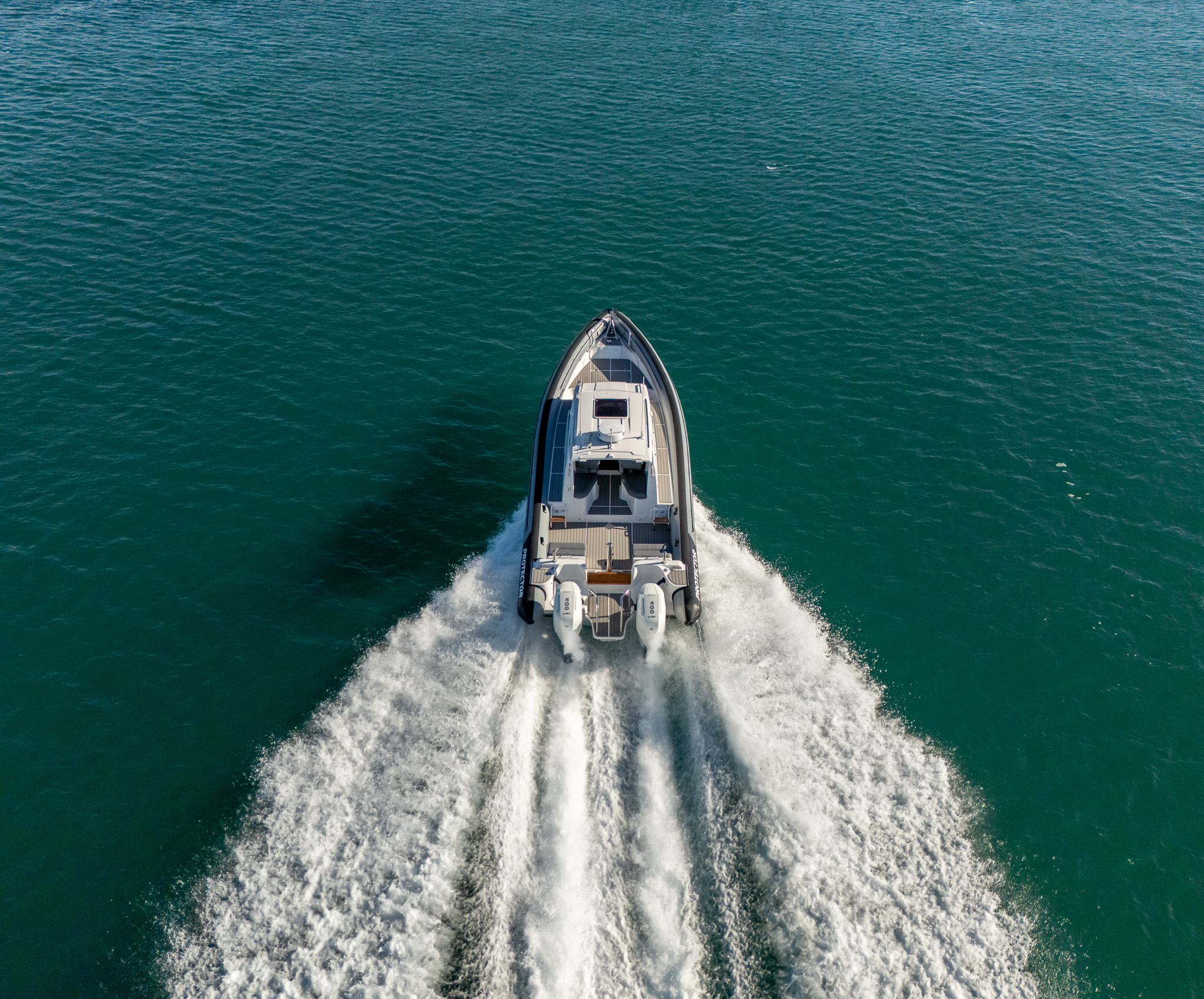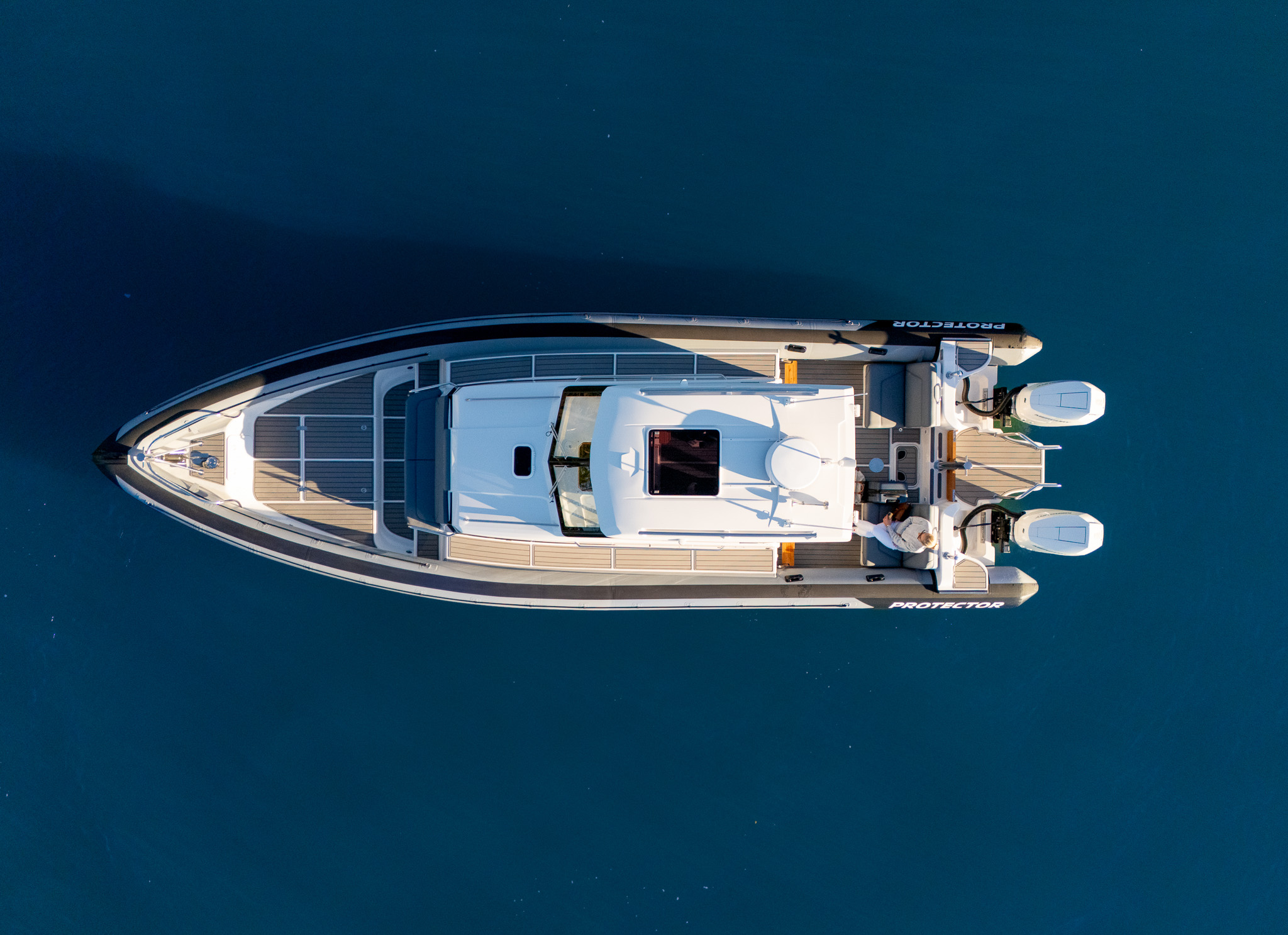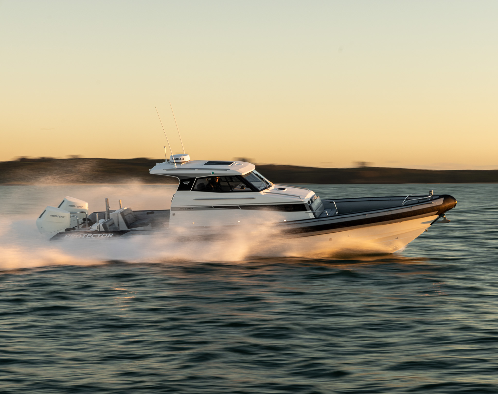 The Protector 380 Targa is a true-blue water performer, ideal for serious recreational users or demanding commercial users who require the best. The 380 Targa is the ultimate example of a seriously capable, comfortable, high performing RIB found worldwide. Designed for ‘tough luxury’ in any sea conditions, the 380 Targa features a spacious cabin layout, expansive interior, a fully enclosed standing head, as well as a multitude of entertainment options and passenger comforts. Besides its performance, one of the defining features of the 380 Targa is its expansive deck space, featuring a 9.5’ internal beam and full walk around allowing quick and easy access to the bow.