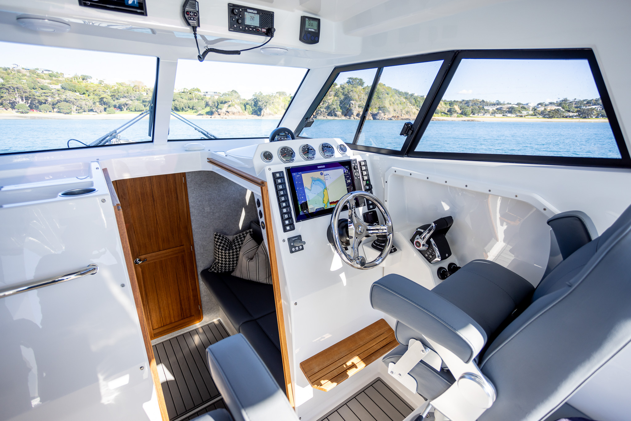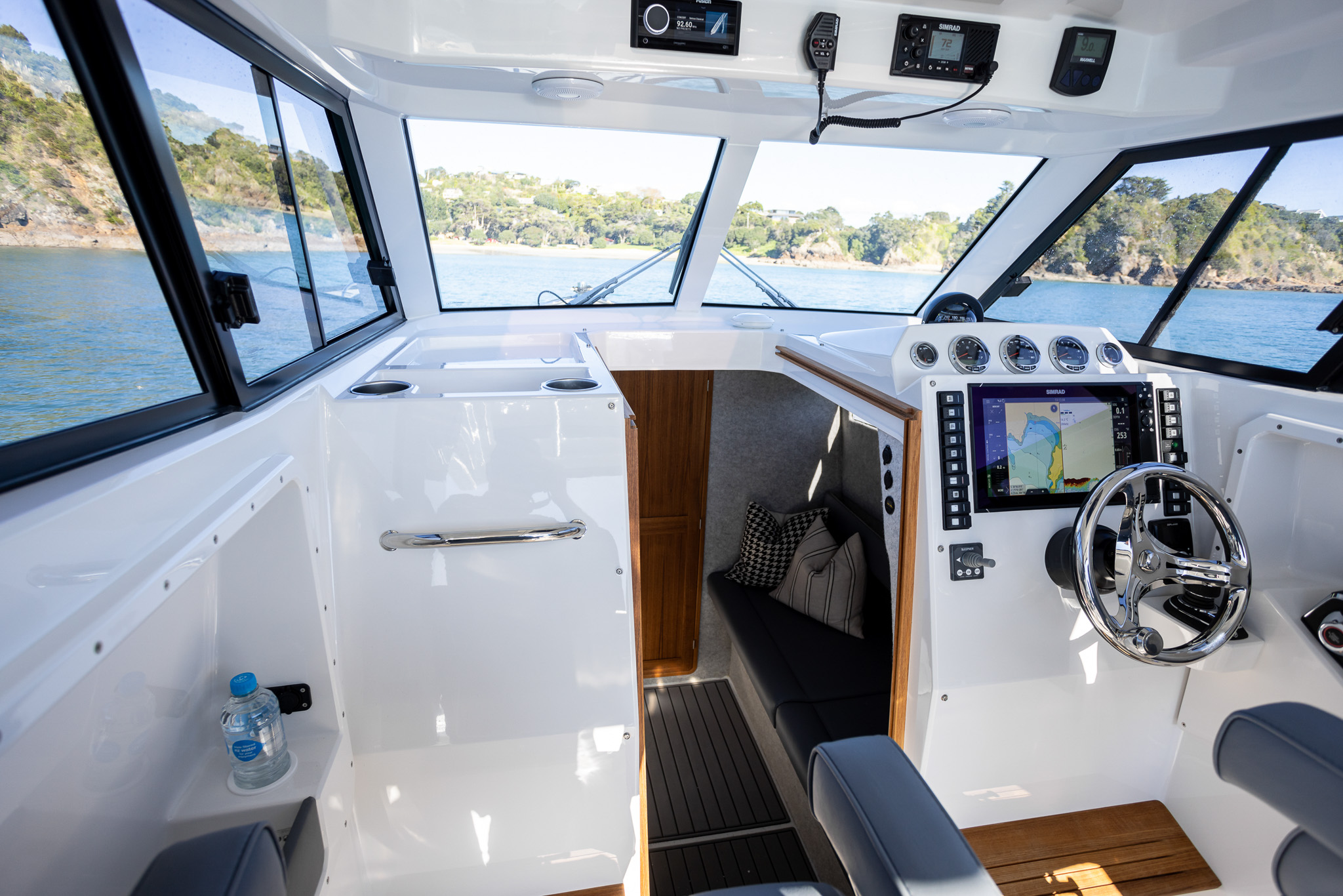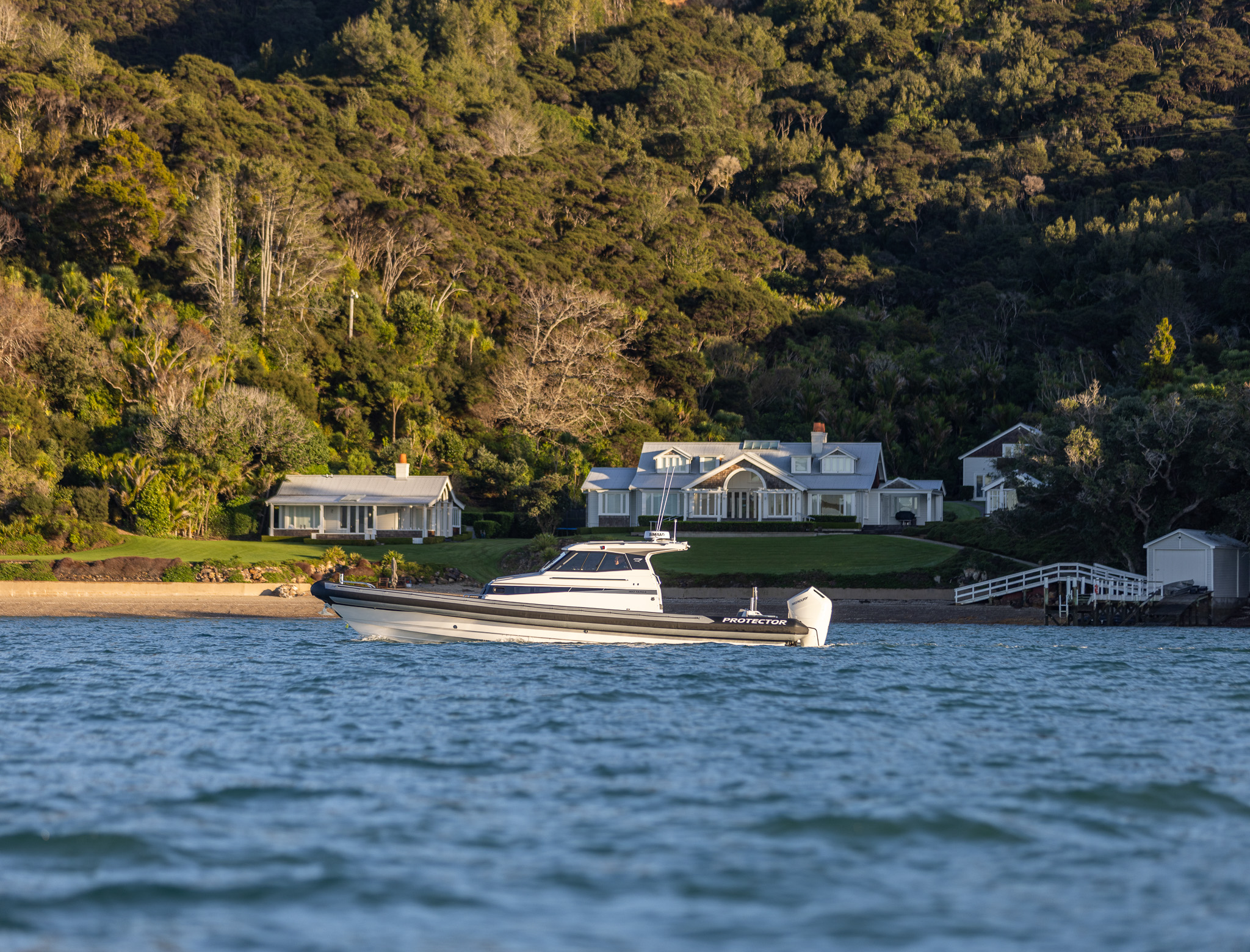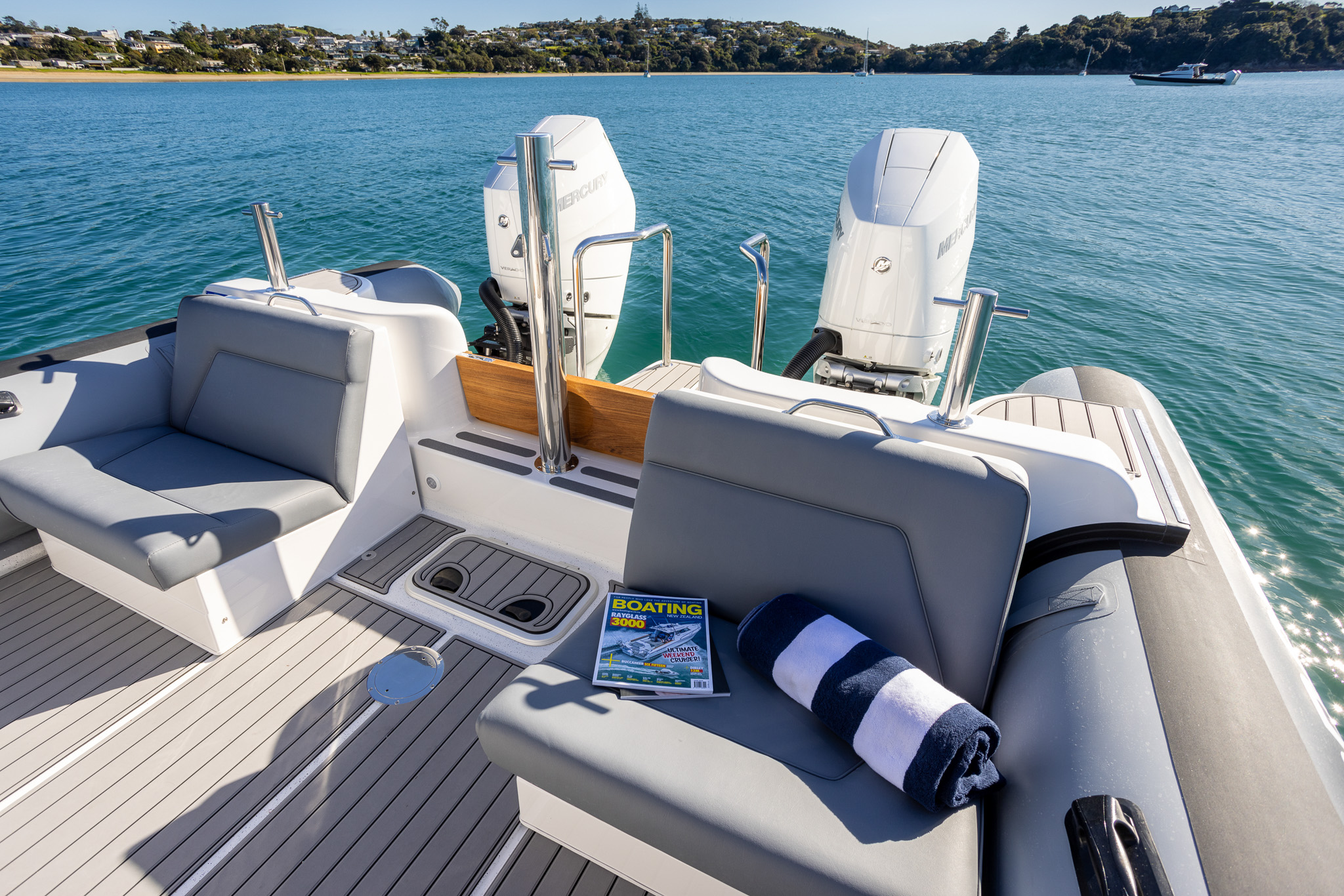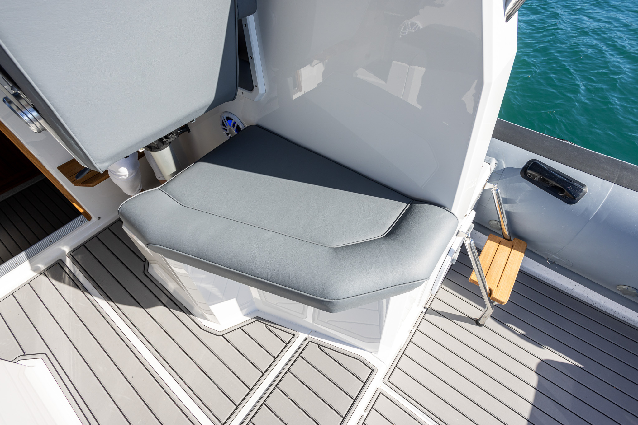 The Protector 380 Targa is a true-blue water performer, ideal for serious recreational users or demanding commercial users who require the best. The 380 Targa is the ultimate example of a seriously capable, comfortable, high performing RIB found worldwide. Designed for ‘tough luxury’ in any sea conditions, the 380 Targa features a spacious cabin layout, expansive interior, a fully enclosed standing head, as well as a multitude of entertainment options and passenger comforts. Besides its performance, one of the defining features of the 380 Targa is its expansive deck space, featuring a 9.5’ internal beam and full walk around allowing quick and easy access to the bow.